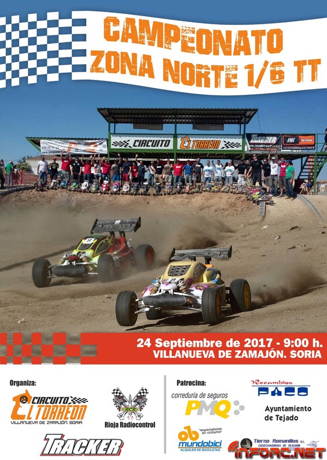 Desde Tracker nos avisan de esta carrera gran escala del Campeonato Zona Norte 1/6 TT que se celebrará el próximo fin de semana en Villanueva de Zamajon, Soria. No te la pierdas y recuerda inscribirte pronto para que la organización pueda prepararlo todo para todos los inscritos ¡los gran escala son una pasada, a por ellos!