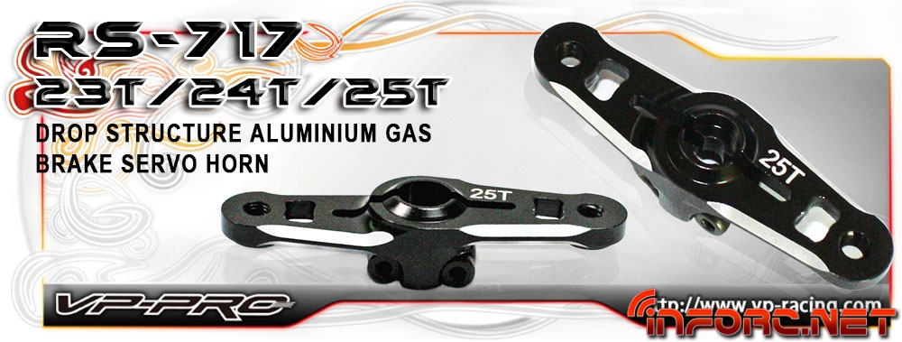 VP Pro presenta sus nuevos brazos de servo RS-717(23T/24T/25T) en aluminio, reforzados para proporcionar una dirección más precisa y mejorar la durabilidad de tu coche RC. También mejoran la respuesta del gas y freno, con un tacto mucho más sensible y preciso. Se suministran en las medidas de 23, 24 y 25 dientes, para encajar en todos los servos actuales del mercado.
