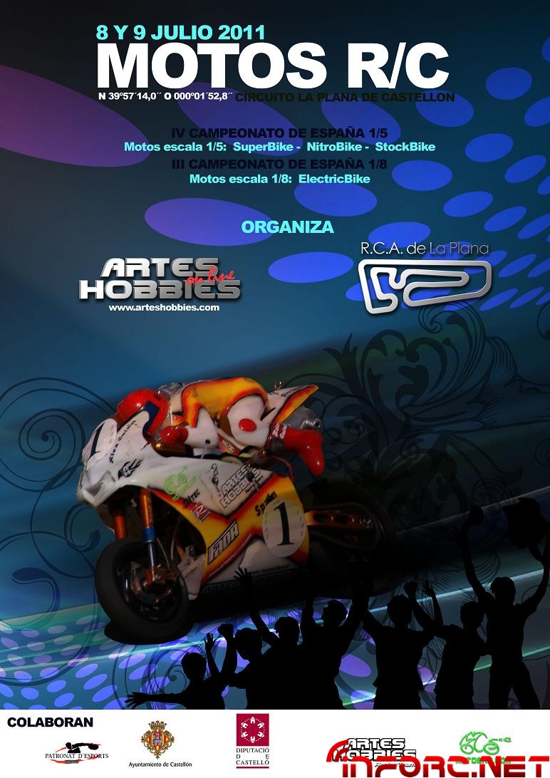 Desde estas líneas os invitamos a todos a participar en el IVCampeonato de España de Motos Rc escala 1/5 y III Campeonato de España de Motos Escala 1/8, que se celebrará en las instalaciones del circuito de La Plana de Castellón los días 9 y 10 de Julio del 2011.