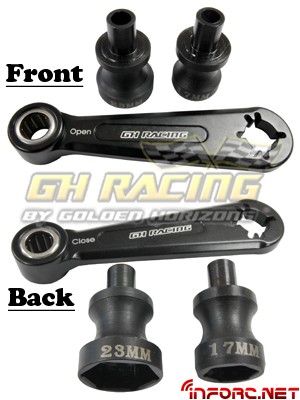 Desde GH Racing nos informan del lanzamiento de nuevas herramientas, como la llave de ruedas “de carraca” (ya sabeis, ese mecanismo que permite apretar en una dirección y no hacer nada en la otra). La carraca se puede configurar en las dos direcciones posibles y tiene dos cabezas, de 17 y 23mm. Además, el extremo opuesto de la llave se puede usar para insertar los pines de embrague de los volantes de inercia para sujetarlos mientras trabajamos con ellos. Opcionalmente se puede adquirir la cabeza de 24mm.