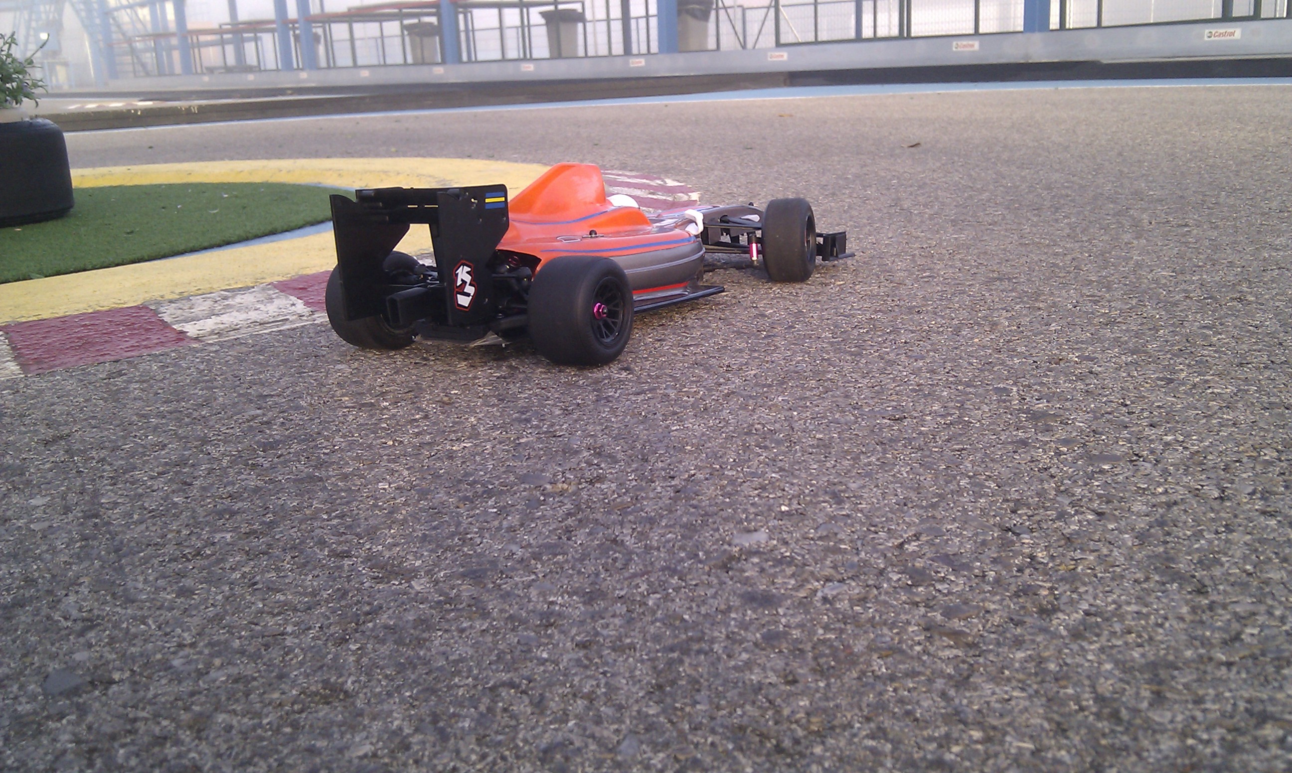 Tras las primeras vueltas no puedo disimular la cara de niño con zapatos nuevos, me gusta….. mmmmmm…… me gusta mucho ………. ¡¡¡¡qué diferencia con el F109 con el que rodé hace un año!!!! Muchisimo más noble de reacciones, muchisimo más suave en curvas, me recuerda mucho a mi F”!0 de Tamiya que tuve hace tiempo en una época que eliminé la transmisión delantera para dejarlo “todo atrás”.