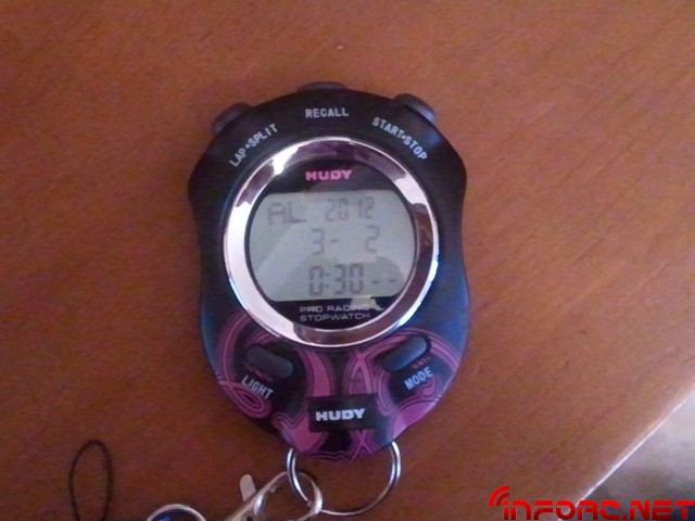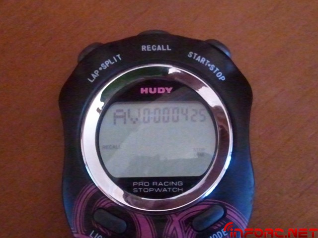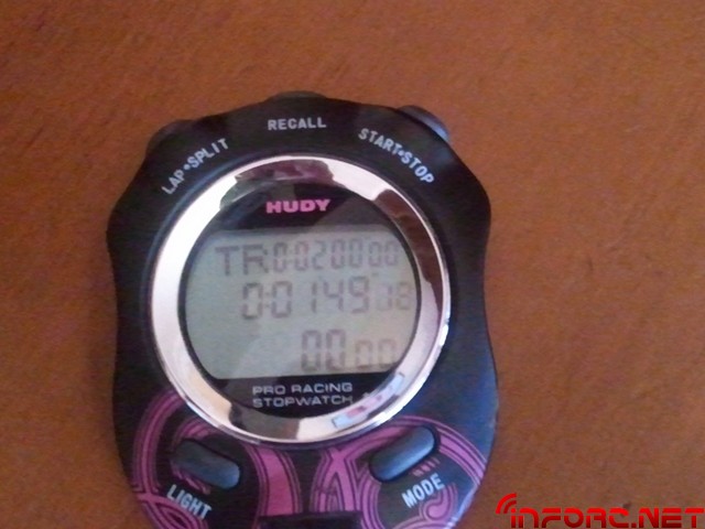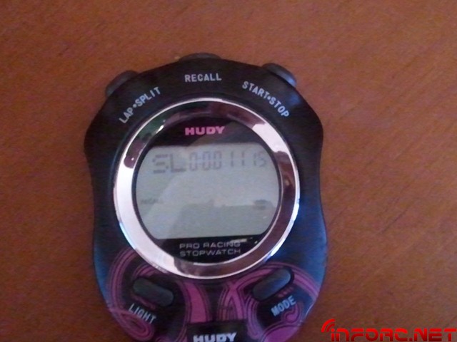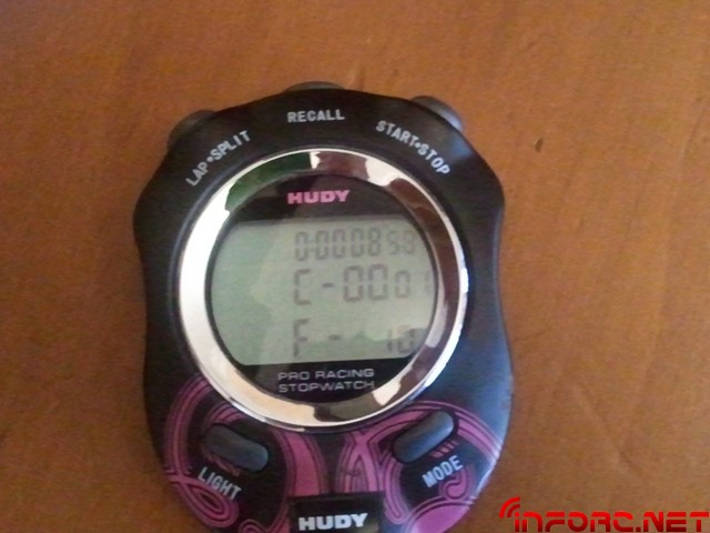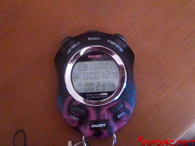 2ª Función: se trata del uso extendido de los cronómetros para automodelismo, el cuentavueltas, donde encontraremos un “display” de tres líneas donde nos apararecerá la vuelta última, en que tiempo acumulado se hizo, y el tiempo corriendo. A parte comprobaremos que en este punto, podremos acceder a la vuelta más rápida, la más lenta, y la media; además de comprobar las 100 vueltas que llega a guardar dicha herramienta