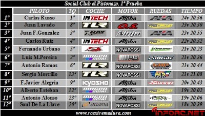 BujiasRC, importador de INTECH para España, nos informa de la victoria del piloto oficial de la marca, Carlos Russo, en el estreno de su nuevo INTECH BR6. La carrera tuvo lugar en Valdivia y se trataba de una carrera social. Tras un dia de frío, lluvia y mucho aire, Carlos Russo se hace con la victoria en su primera carrera con el INTECH BR6, demostrando que se ha adaptado realmente rápido al coche nuevo como se puede ver en los resultados de la tabla adjunta, sacando una vuelta de ventaja al segundo clasificado.