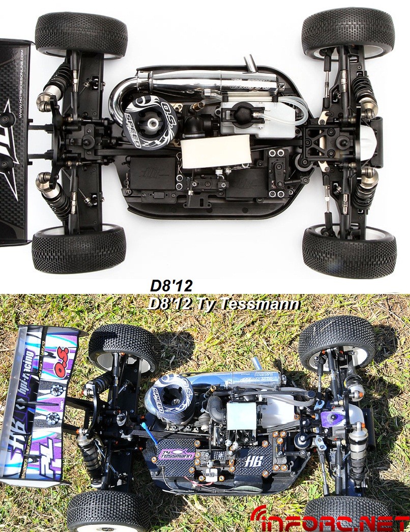 Tras tener un maravilloso final en la Off-Roar Nats de América, en el equipo de Hot Bodies ya se hacía eco la nueva versión del D8’12 que prácticamente era un 99.5% de lo que llevó el ganador Ty Tessmann durante esa prueba. Sin embargo el coche fue diseñado en circuitos de formas “americanas”. Cuando el equipo llegó en el Warm Up al circuito de Argentina, los pilotos comentaron sus dificultades de cara al Mundial y el equipo hizo lo propio. A parte cada usuario montó algunas opciones futuras que detallaremos más adelante: