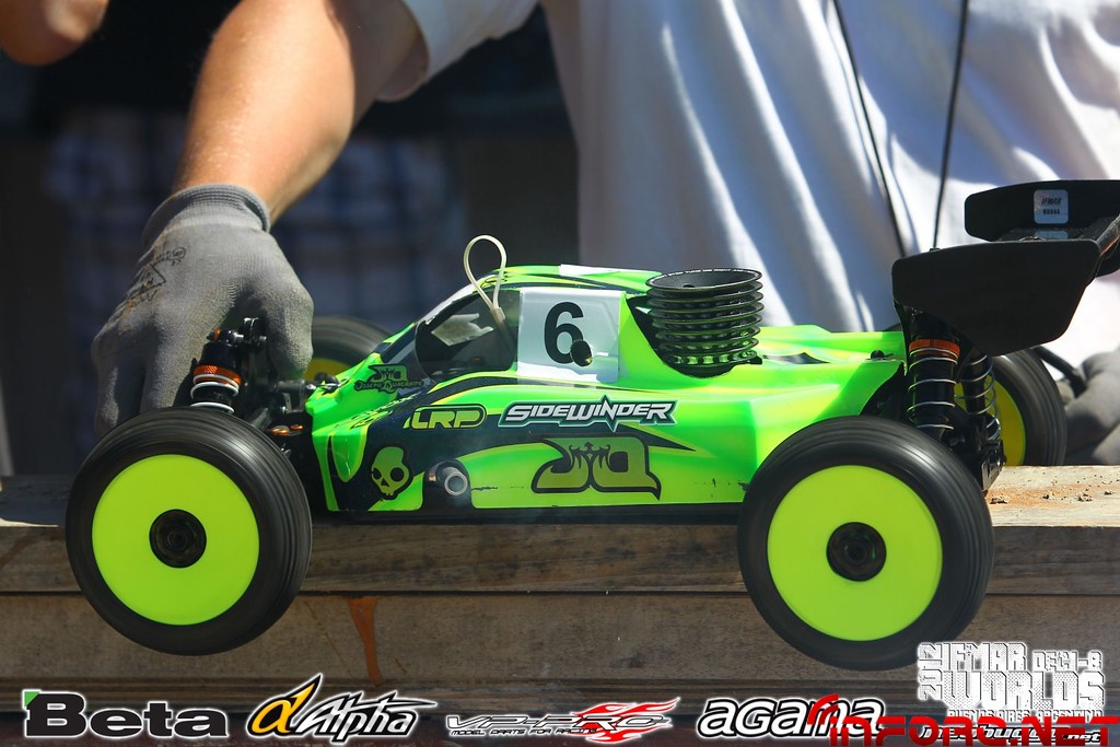 Como es normal, cualquier marca de radiocontrol involucrada en un Mundial haría lo que sea por ganarlo. Por ello siempre es grato ver que casi sin excepción los equipos desarrollan sus piezas y optan por usar los mejores materiales para ellas. Desde simples “plomos” añadidos en algún lugar de los flamantes chasis, hasta prototipos donde varía prácticamente todo el conjunto. De esto son también culpables los pilotos, quienes además de su pilotaje aportan su ingenio e inventos para conseguir buenas posiciones y por ello se fabrican artesanalmente piezas que muchas veces tienen un acabado superior o más práctico que el original.