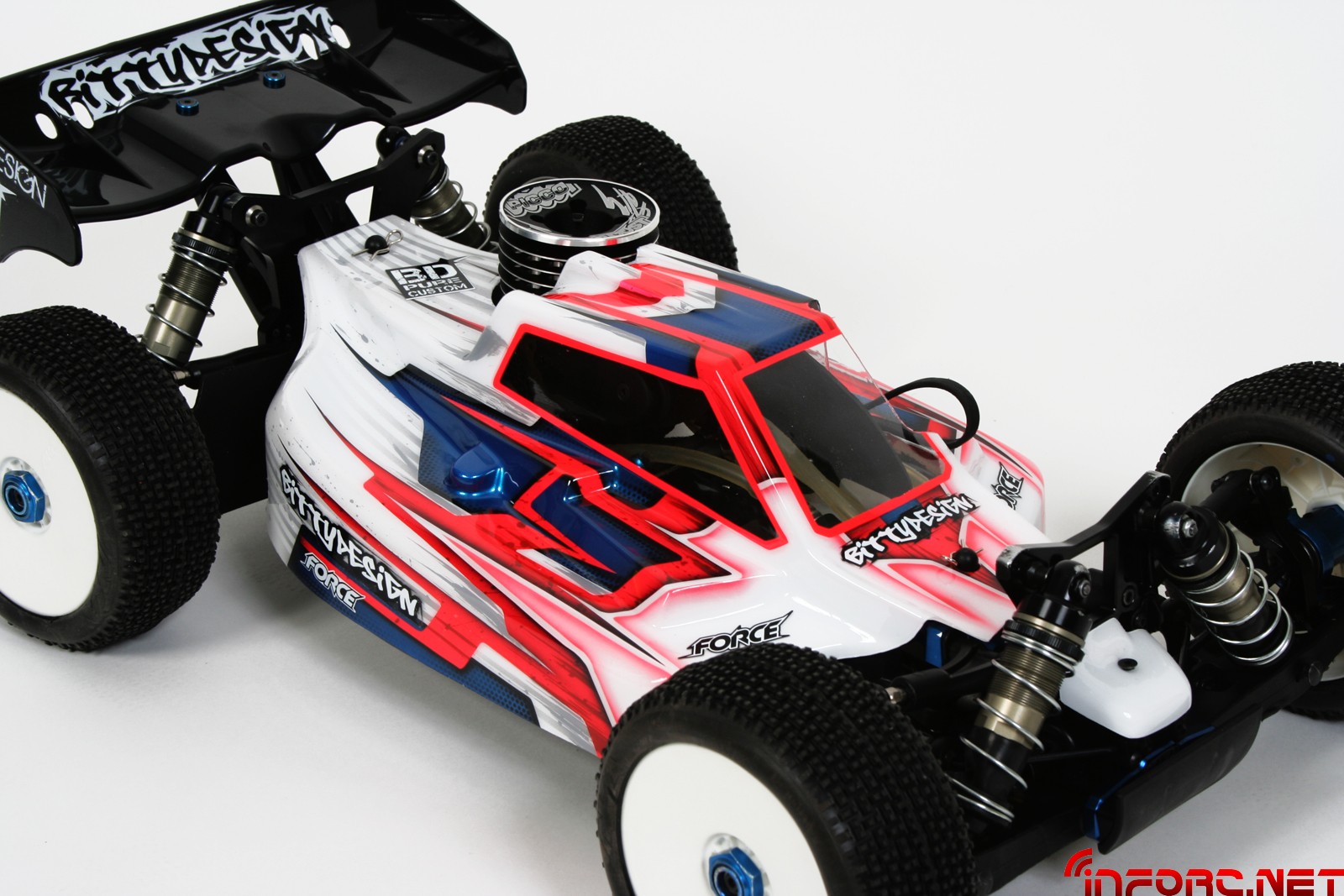 Como pudimos ver con la nueva Force para Mugen MBX7, los chicos de Bittydesign están actualizando toda su línea de carrocerías para perfeccionar los aspectos mejorables de los primeros modelos. En este caso, la primera versión de Force para Associated funcionaba perfectamente, recibiendo solo buenos comentarios de los pilotos que la usaban, como Yannick AIgoin, quien solo montaba esta carrocería para todas sus carreras. Por ese motivo, la Force 2.0 se ha centrado sobre todo en los cambios estéticos, como el aspecto más moderno de la “cabina” y reforzado la parte frontal cerca de la zona del clip de carrocería. Además han mejorado el diseño del alerón trasero y las tres tiras de refuerzo en la zona superior de la cabina, ahora más resaltadas.