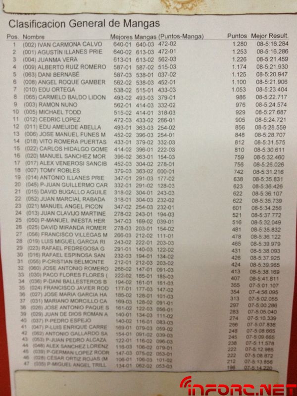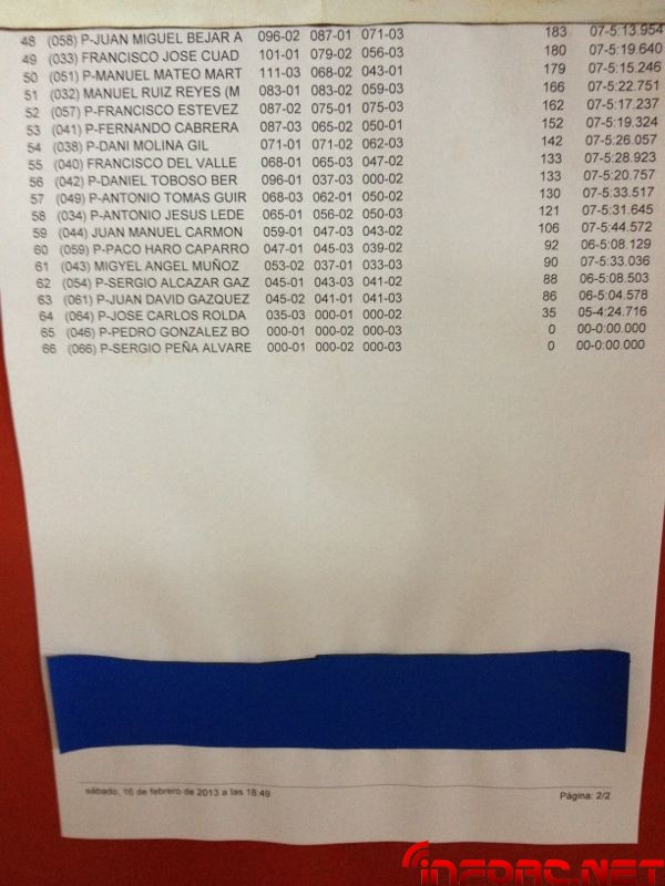 Edu Ortega ha enviado esta tarde estas fotografías que os dejamos, pero no las hemos recibido hasta hace un momento. IMPRESIONANTE la diferencia de tiempo entre el primer clasificado, Iván Carmona y el segundo, Agustín Illanes.