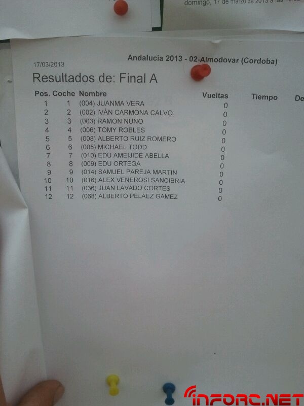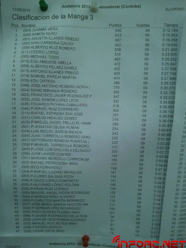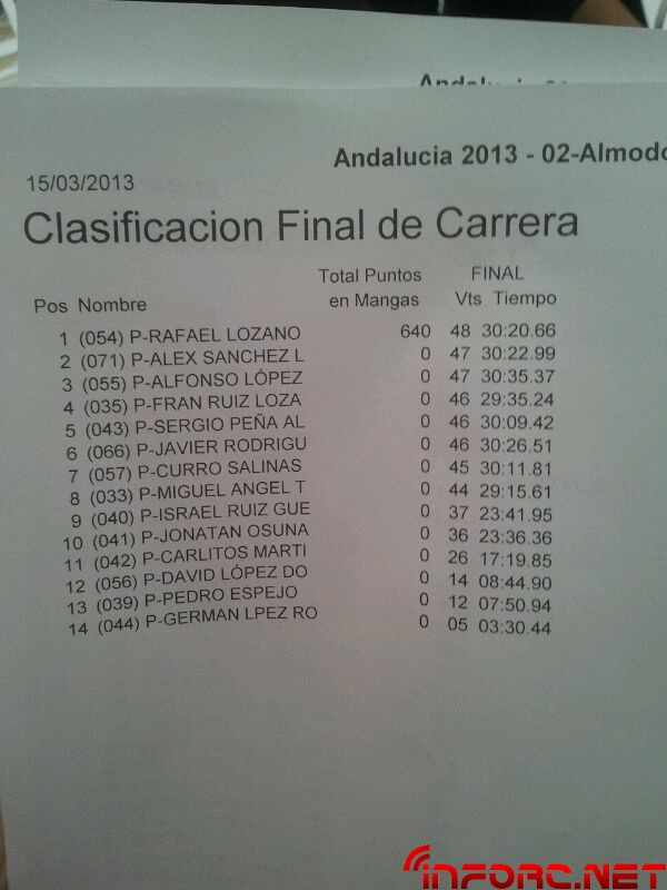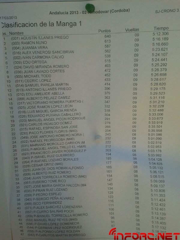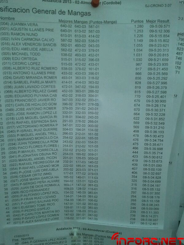 En una final con lluvias intermitentes estos han sido los resultados del Campeonato de Andalucia en Almodovar del Rio este fin de semana.