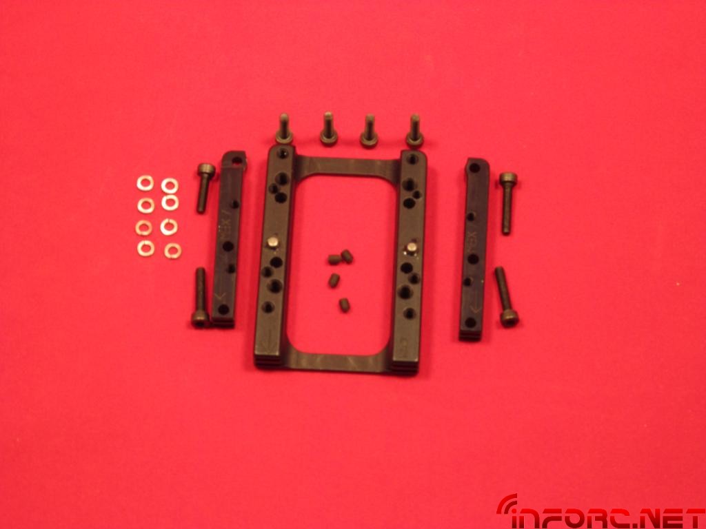 Se trata de la araña del salvaservos (o sub-chasis) para sustituir el original de composite, bancada monoblock para el motor que facilitará los cambios en el mismo sin tener que volverlo a atacer, brazo del salvaservos, soporte de baterías (tanto el de dimensiones normales, como el sobre-dimensionado) y un protector para la mariposa delantera de carbono.