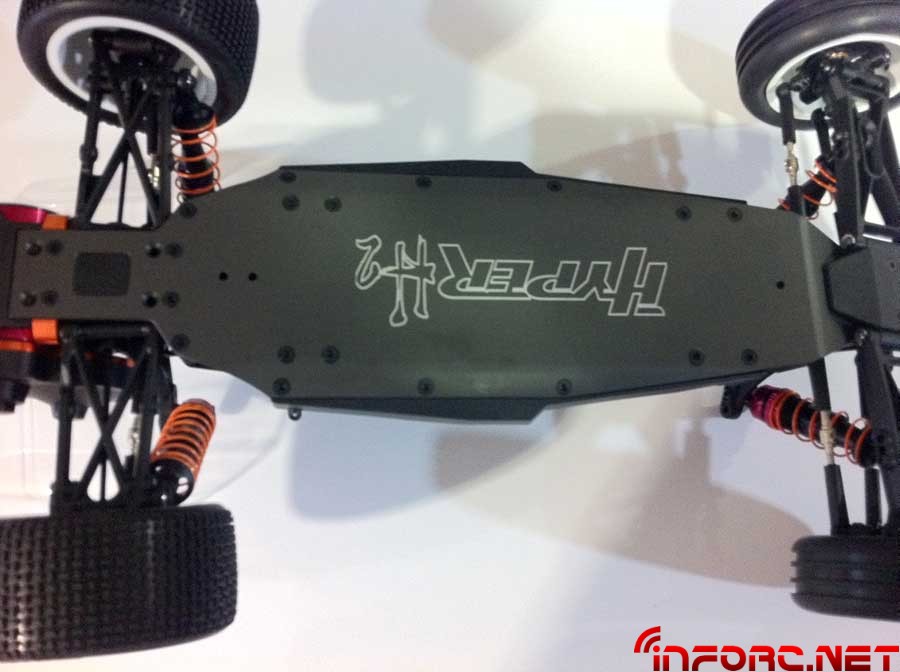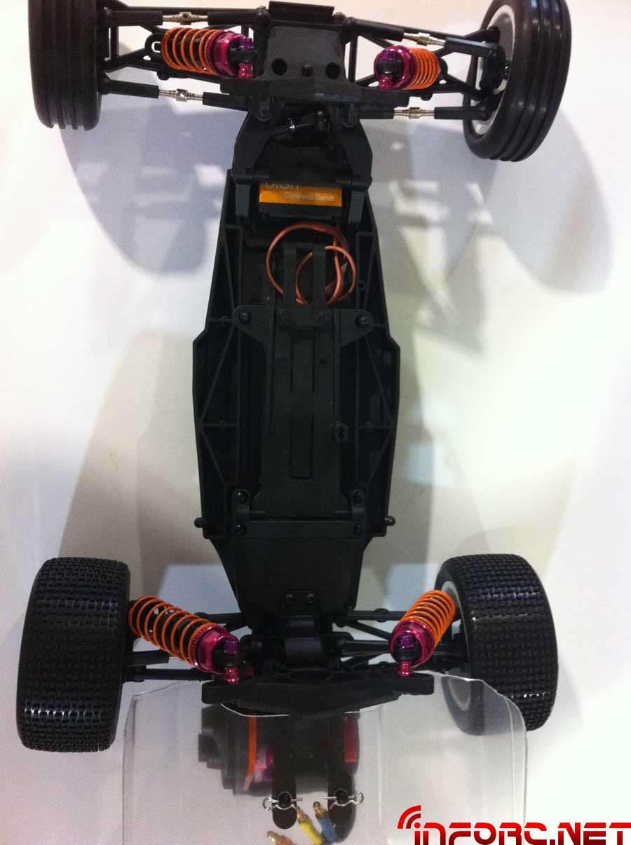 Monta chasis de cnc, el cual dota al coche de la posibilidad de ser hibrido y montarlo asi en versión mid o rear motor. Los diferenciales también destacan por su diseño ya que se tratan de unos diferenciales estándar de satélites y planetarios, no de pistas y bolas como en otros modelos. Destacar también que monta amortiguadores bigbore de 12mm doble almohadilla slipper asi como una solución muy ingeniosa para este y rodamientos de bolas sellados en todos los puntos.