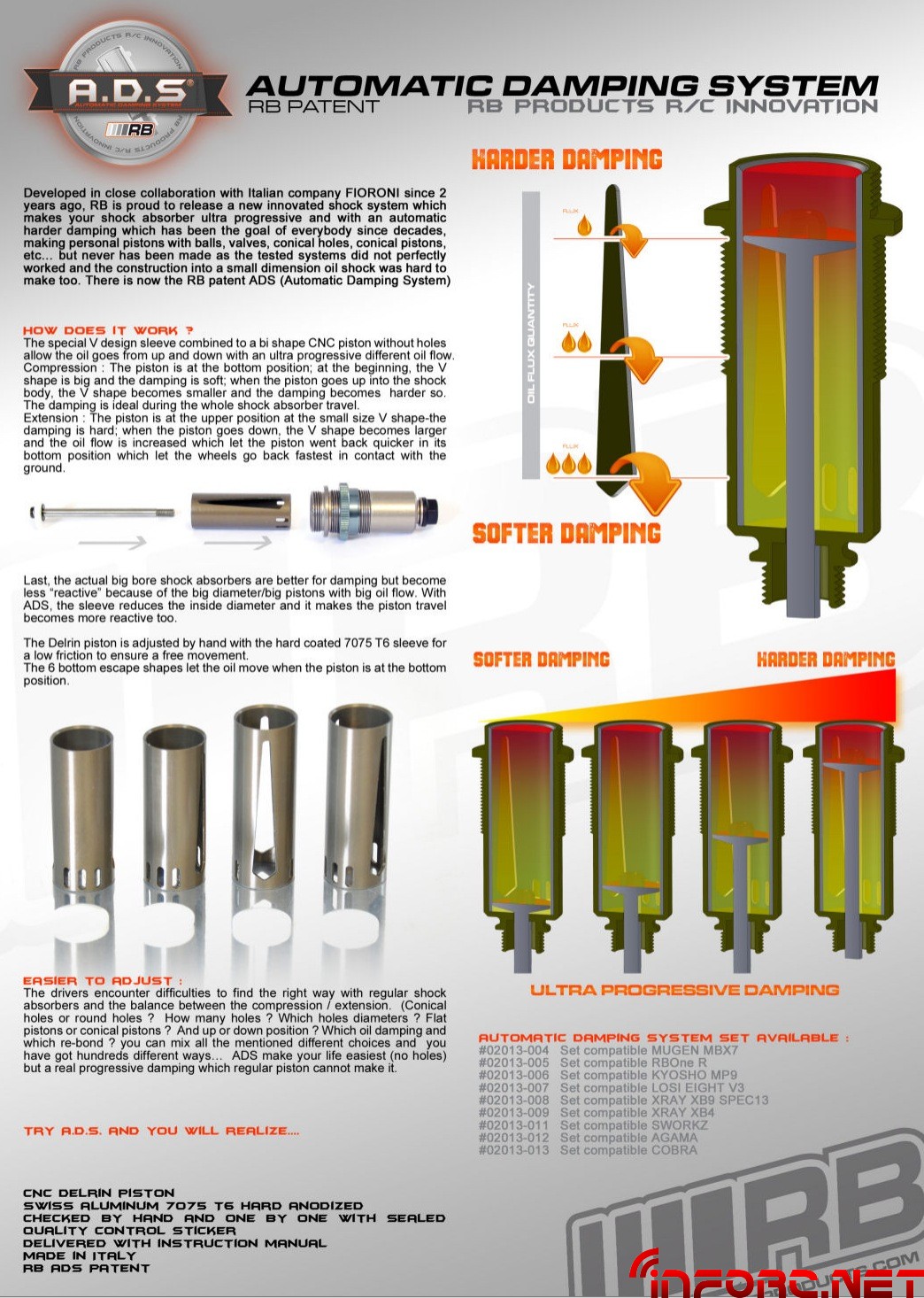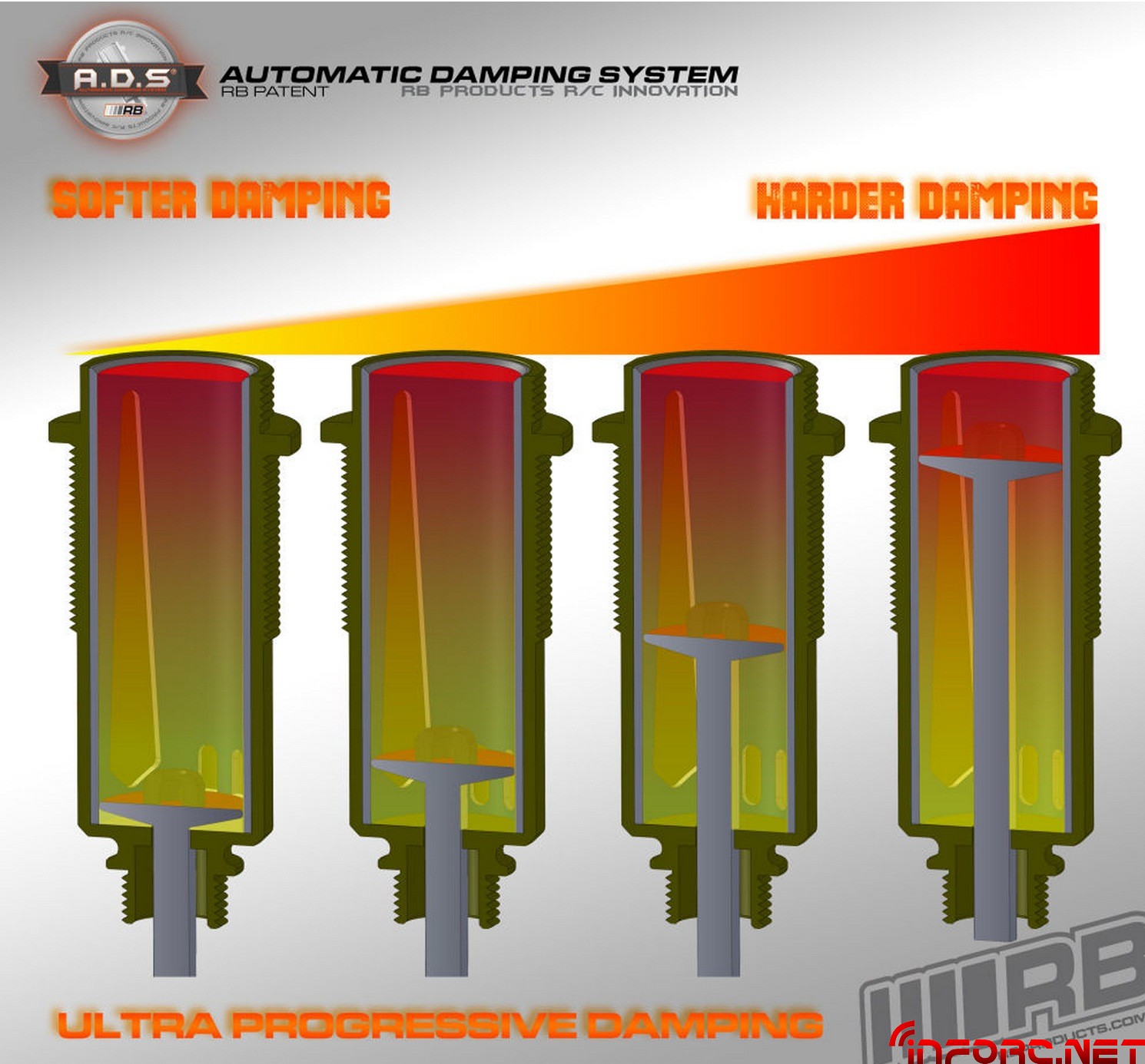 RB en colaboración con Fioroni, ha desarrollado un, “sistema de amortiguación automática”, aunque su nombre más preciso sería “sistema de variación automática de dureza del amortiguador” o en resumen, un amortiguador progresivo. Ojo, no se debe confundir amortiguador progresivo con muelle progresivo, aunque la base es la misma, son piezas distintas de la suspensión. En un muelle progresivo varía la dureza del muelle según la cantidad de compresión mientras que en un amortiguador progresivo, varía la dureza en el movimiento del vástago. Este sistema lleva meses en desarrollo y ha sido probado incluso en Argentina en los coches de algunos pilotos punteros.