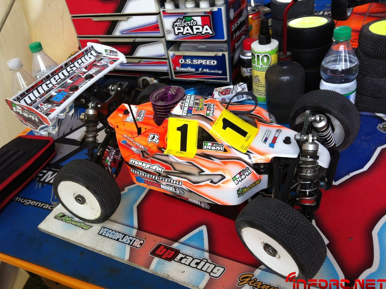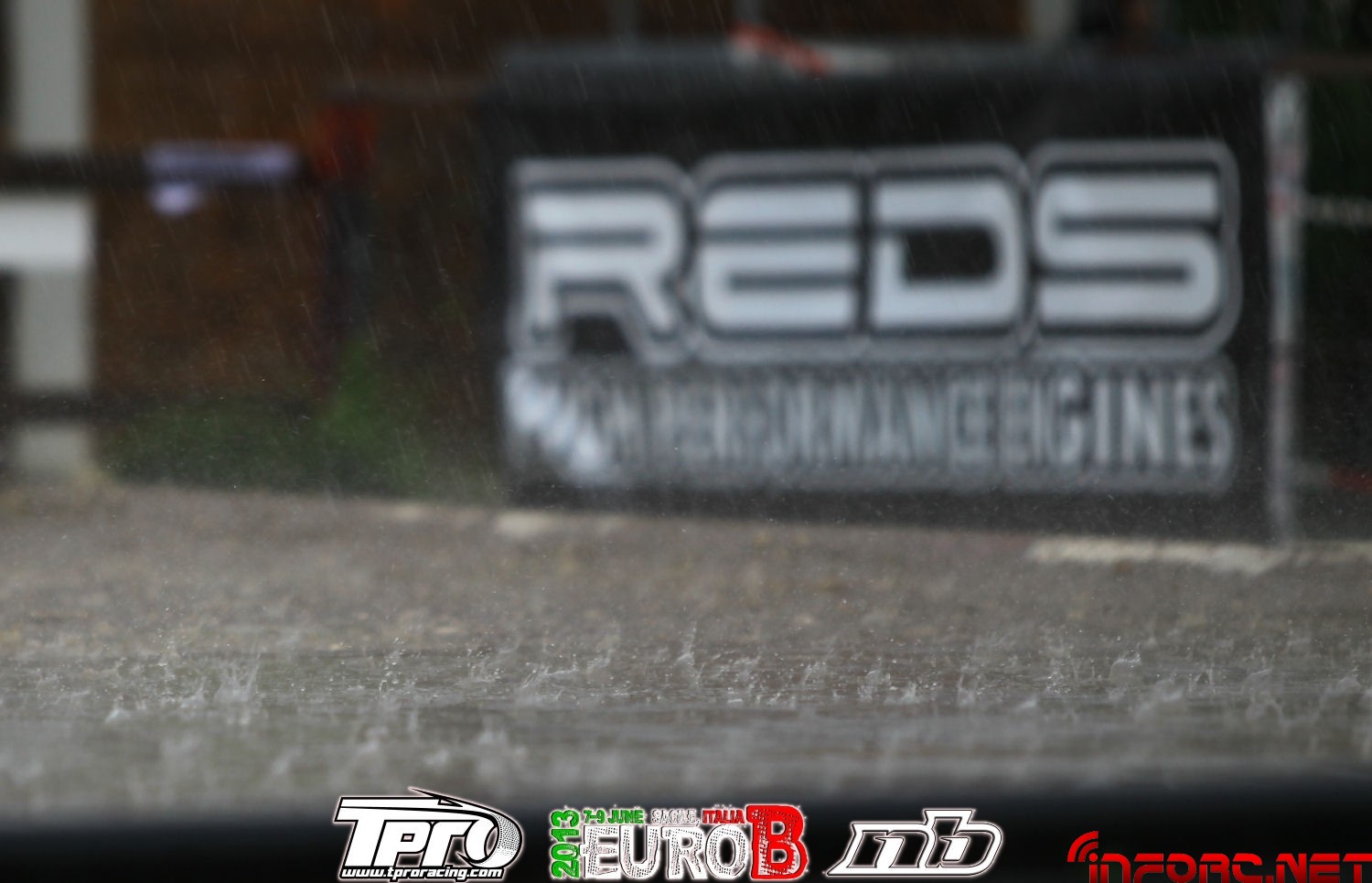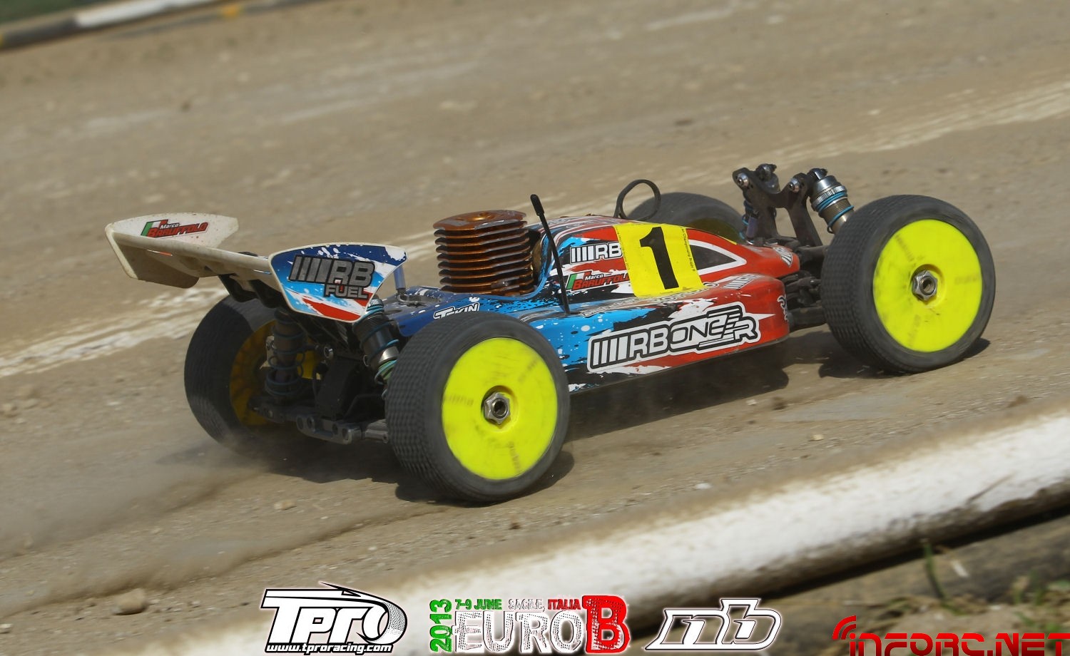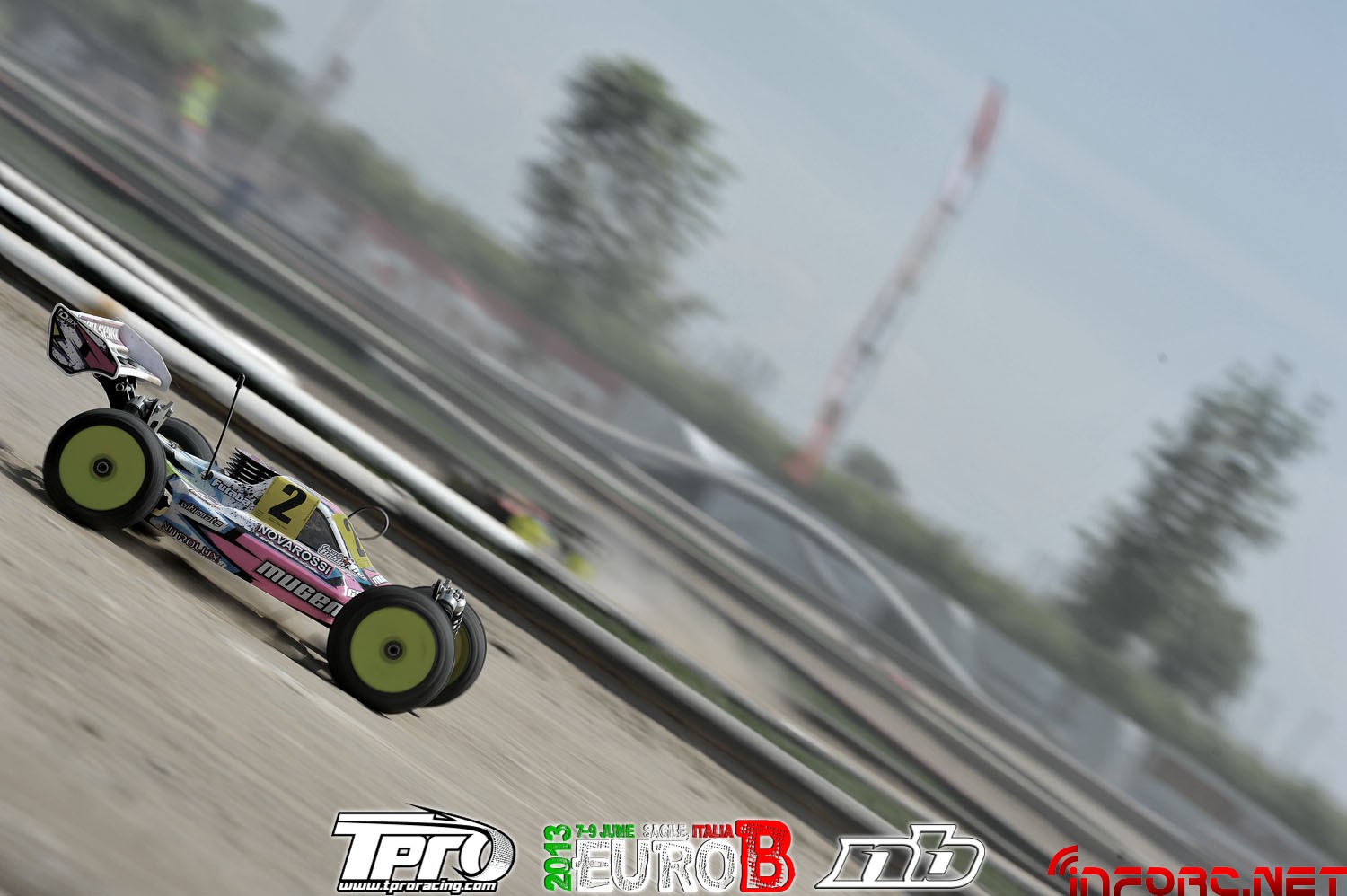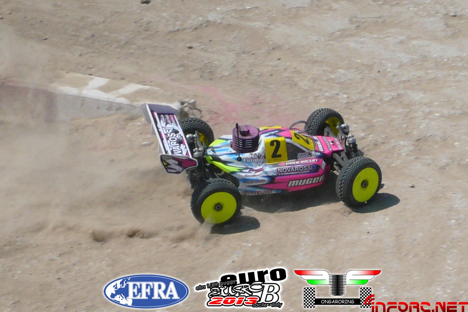Actualización (Novedades y fotos de Miguel Izquierdo y Neobuggy) 08/06/2013 a las 23:48: En el día de hoy se han disputado solo tres de las cuatro clasificaciones con motivo de las fuertes lluvias que obligó a suspender el resto de la programación. La pole la consigue por tanto el italiano que ayer se llevaba la primera posición en entrenamientos, Davide Ongaro, tras ganar en las dos primeras mangas clasificatorias con su Mugen MBX7. La última manga disputada se la llevó el italiano que ayer empató en puntos con el poleman, Marco Baruffolo, piloto de RB One.