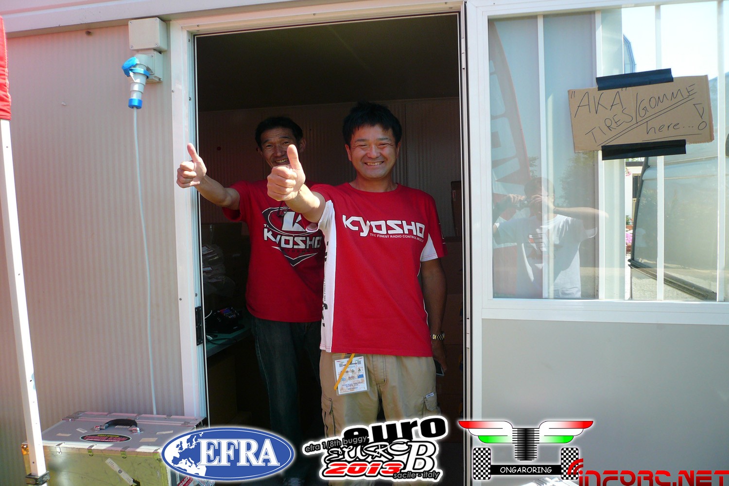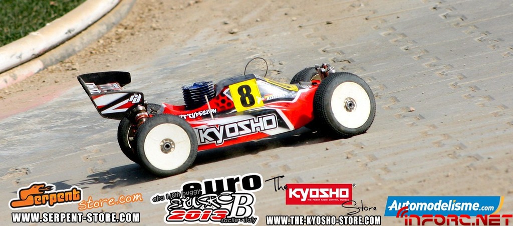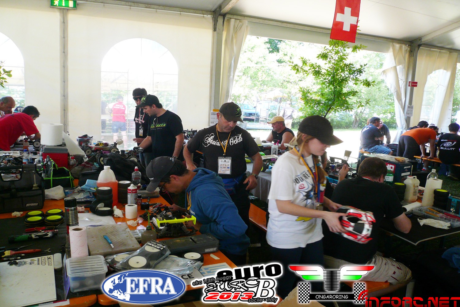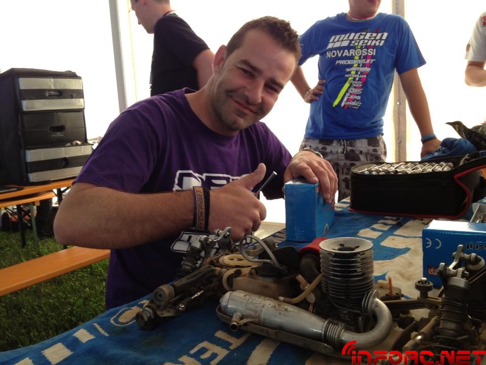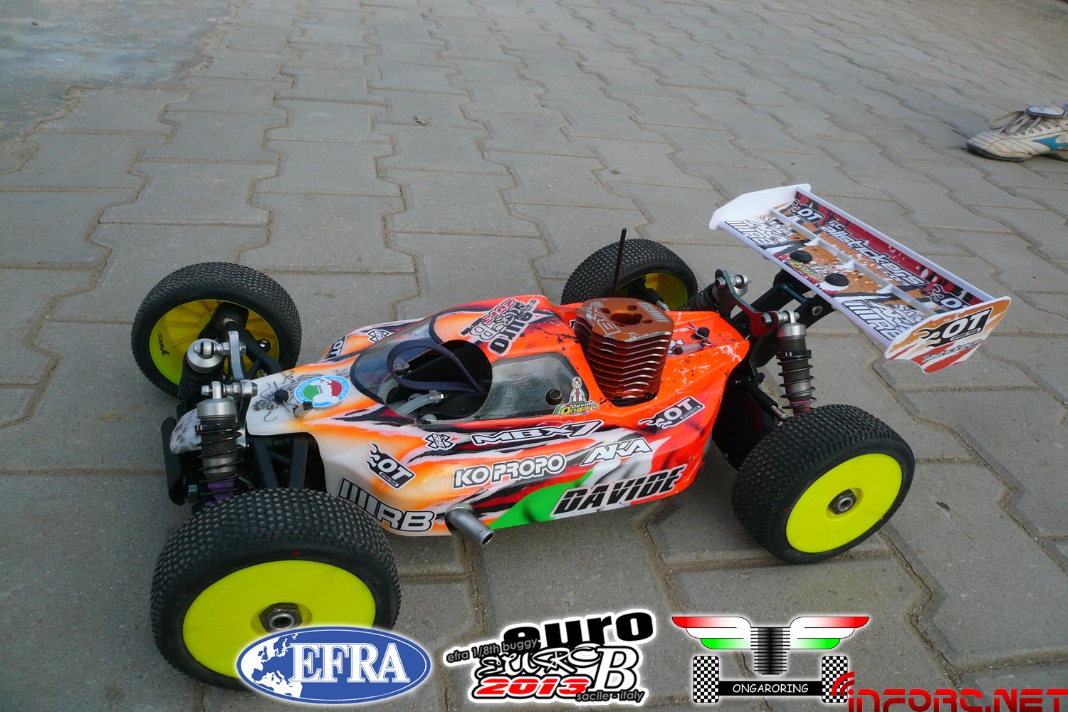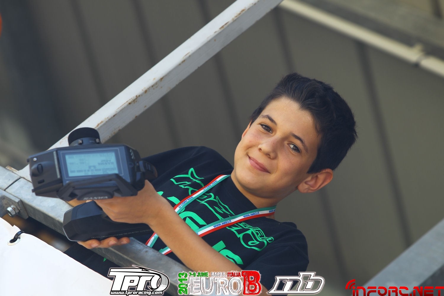 Actualización (Novedades y fotos de Miguel Izquierdo y Neobuggy) 08/06/2013 a las 23:48: En el día de hoy se han disputado solo tres de las cuatro clasificaciones con motivo de las fuertes lluvias que obligó a suspender el resto de la programación. La pole la consigue por tanto el italiano que ayer se llevaba la primera posición en entrenamientos, Davide Ongaro, tras ganar en las dos primeras mangas clasificatorias con su Mugen MBX7. La última manga disputada se la llevó el italiano que ayer empató en puntos con el poleman, Marco Baruffolo, piloto de RB One.