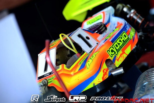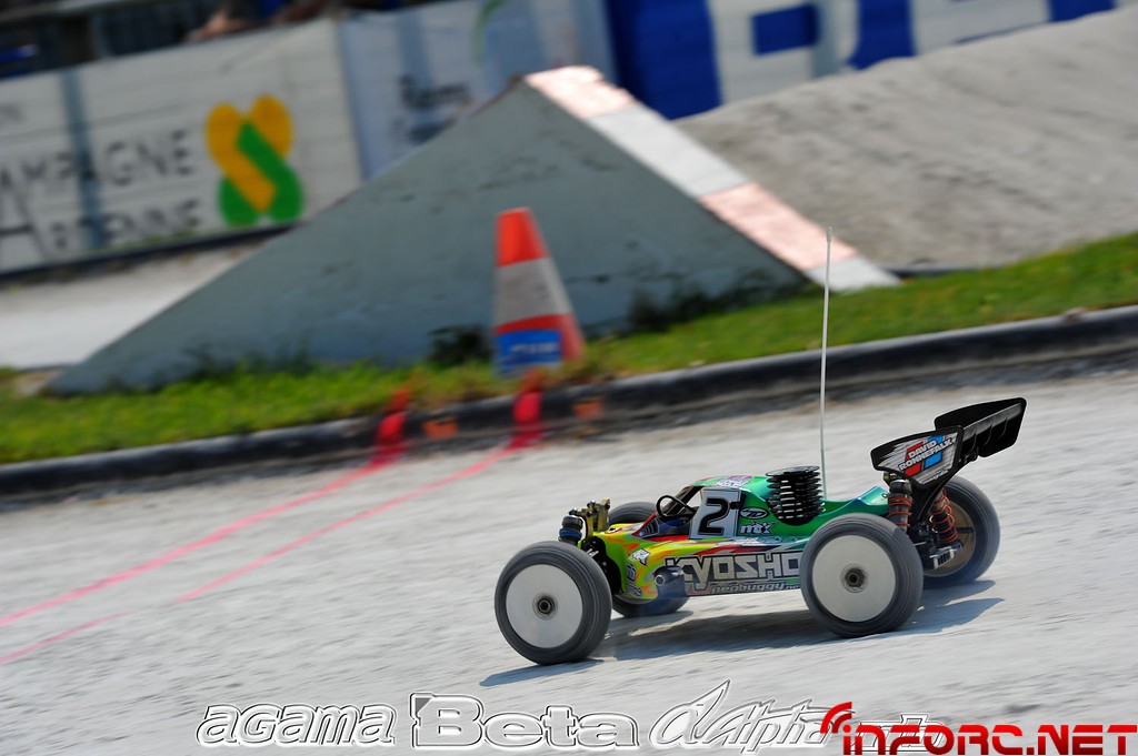 Jerome Aigoin sin embargo salía a gusto con el coche y con la esperanza de poder batir su tiempo con facilidad, ya que comentaba que había pecado de constancia y que su objetivo para la próxima manga de clasificación no era ni más ni menos que realizarla completamente limpia, y si esto sucedía podría alcanzar la primera plaza con facilidad. Además añadió que monta el setup estándar en su Kyosho, que cree que no necesita demasiados cambios.