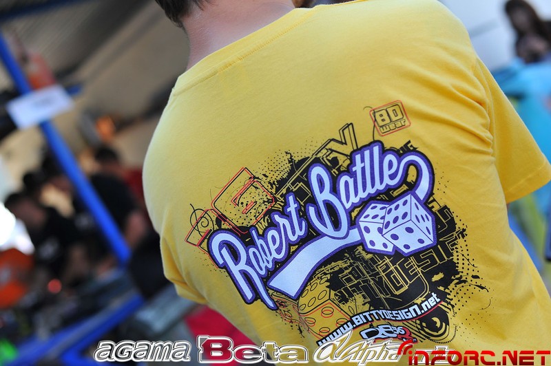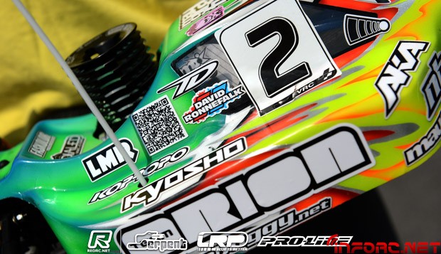 En lo que concierne a la competición, durante la primera ronda de entrenos cronometrados, vimos como el joven piloto de Kyosho, David Ronnefalk, motivado quizás por ese fallo en el europeo del año pasado que le dejó en segunda posición, parecía imparable y vencía el crono de Yannick Aigoin por tan solo 2.7 segundos de diferencia. Las condiciones de la pista por la mañana con el trazado más frío le favorecían y aprovechó para empezar con buen pie. Tras esto, junto a Mark y Ryan Pavidis se fueron al McDonalds a comer y relajarse para estar al máximo en la segunda ronda.