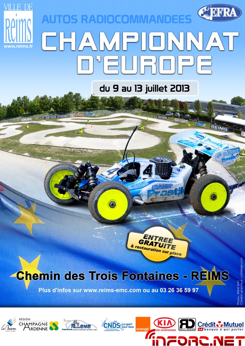 Hoy comienza la edición número 33 del Campeonato Europeo 1/8TT Gas vuelve a realizarse en Francia, 8 años desde la última vez en 2005 el mismo circuito de la región Champagne Reims, donde se impuso Davide Tortorici con el Crono RS03, logrando su segundo europeo. Para el día de hoy se programa el registro a pie de pista y la inspección de los pilotos. Ya a partir de mañana empiezan las prácticas desde las 9 de la mañana