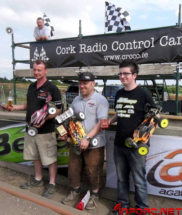 La segunda carrera del campeonato irlandés tendría lugar en una pista nueva para nuestro calendario, se trata de Cork Radio Control Car Club, en Brinny, Cork. En las cuatro mangas clasificatorias de siete minutos cada una, logré la pole. En eléctricos, Adrew Rennick hizo tres series muy consistentes que le posicionaron tercero de cara a las finales.