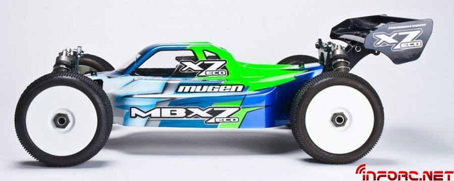 Con los estupendos resultados de la versión nitro y tras ganar el mundiale de Argentina con él, Mugen ha continuado con el desarrollo del MBX7 y para esta ocasión nos presentan la versión eléctrica, a la que han llamado MBX7 ECO M-Spec. El título de M-Spec se proporciona a los modelos que vienen pre-montados con reglajes de sus pilotos oficiales y con algunas opciones ya instaladas.