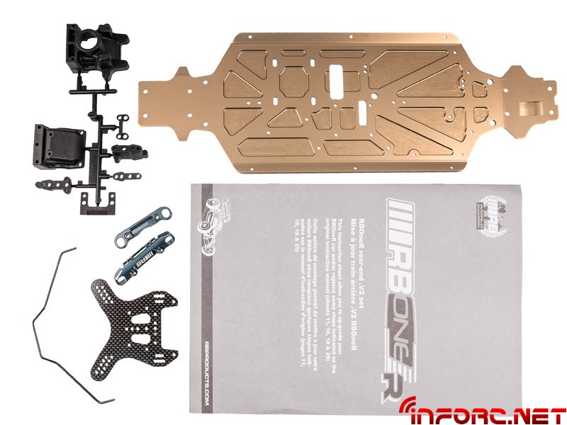 RB acaba de informar de que lanzarán en poco tiempo al mercado, la actualización de su reciente modelo ganador del europeo B en Sacile, Italia, al que han denominado RB One R V2 2013. Con la V2 se ha rediseñado en algunos aspectos, comenzando por un nuevo chasis un poco más largo, fabricado en aluminio 7075-T6 anodizado, por lo que se añade un nuevo palier centrar-trasero más largo adaptado a la nueva longitud del coche.