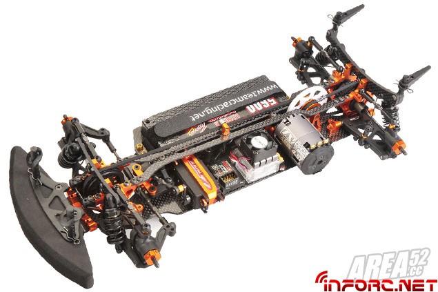 Hace unas semanas se podían ver algunas fotos de un prototipo realizado por TeamC y ahora tenemos las imágenes del coche listo para producción. Por lo que se puede observar en las fotos, el TC10 hace uso de elementos cuyos diseños tienen una eficacia más que probada, como es el caso del chasis y toda la bandeja superior de 2.25 mm espesor en fibra de carbono, los soportes de las mariposas delantera y trasera en aluminio anodizado y de color naranja, y una bancada de motor y amortiguadores de perfil bajo para optimizar en centro de gravedad . Incluye también una polea delantera y un diferencial trasero que es montado mediante una correa que abarca el eje longitudinal del coche, dejando a los lados el soporte de batería y las bancadas flotantes del servo y el variador. Por ahora no se conoce la fecha de lanzamiento, pero sí se sabe que está listo para producción.