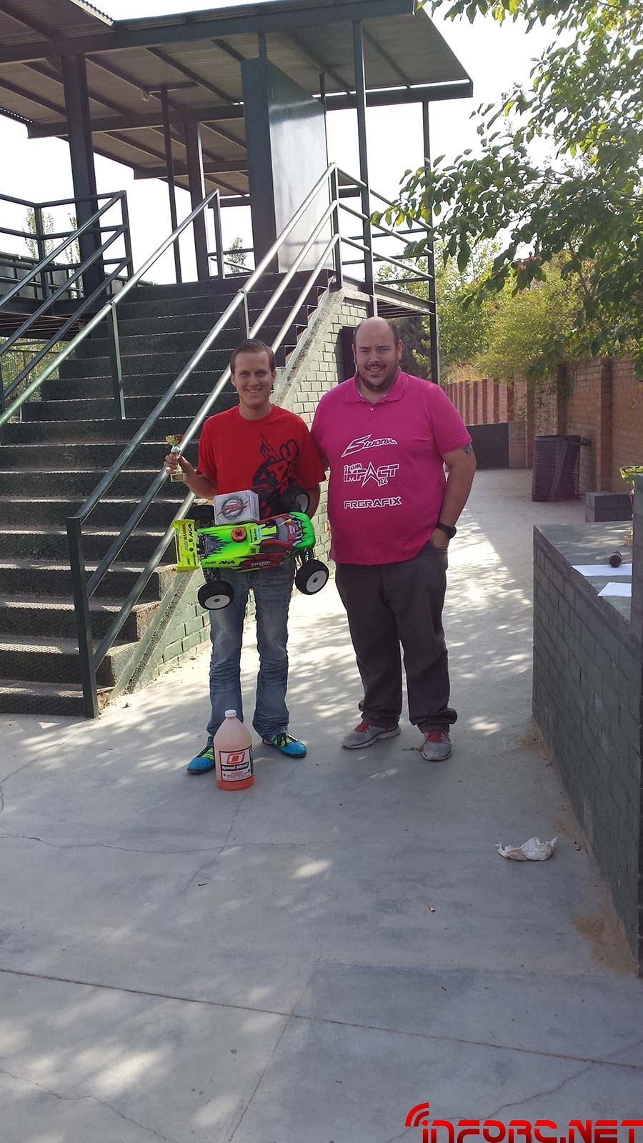 Los entrenos el sábado en general muy bien, probé un poco diferentes muelles de amortiguador, estabilizadoras y dureza de embrague, sacando un setup definitivo que podéis encontrar en RCSetups.es haciendo clic aquí. El domingo en la 1ª manga en la tercera vuelta rompí un trapecio en el salto delante del podio por caer sobre un muro de hormigón. En la 2ª manga todo sale bastante bien, a parte de un vuelco. Después de las 2 mangas estoy 10º en la general.