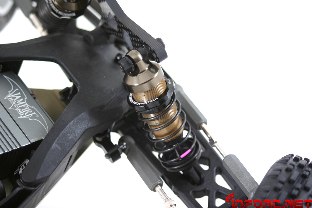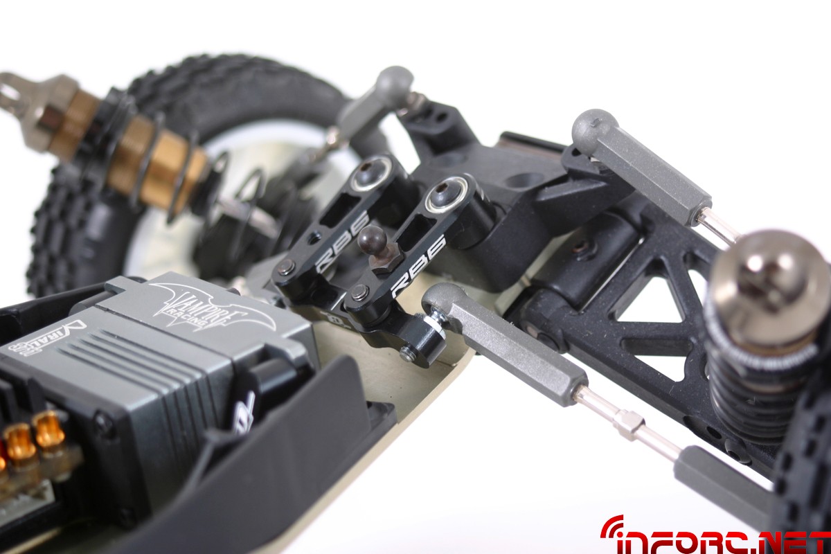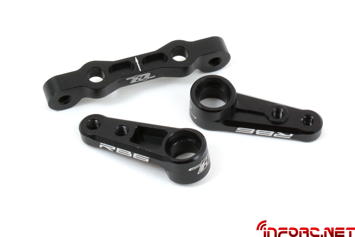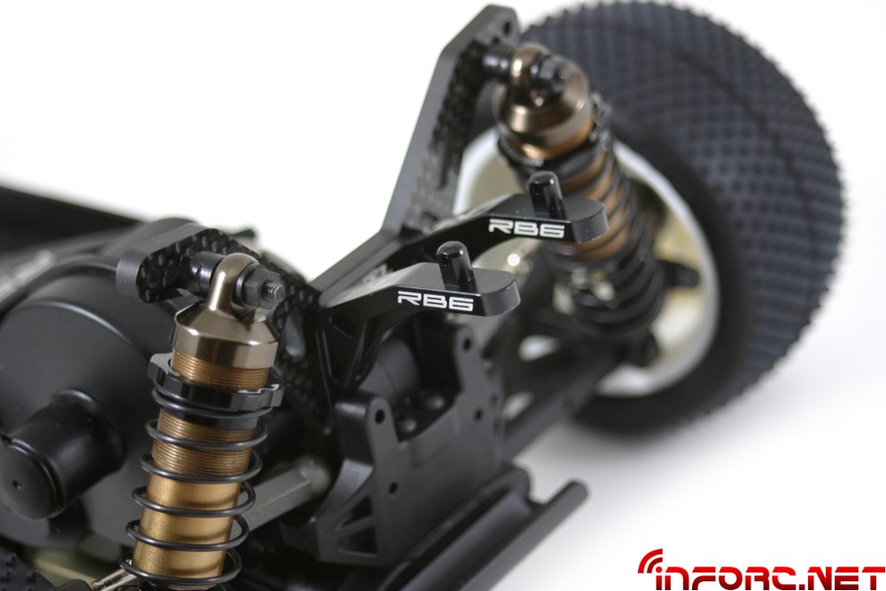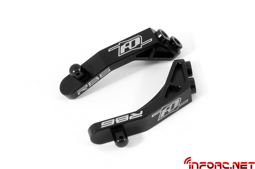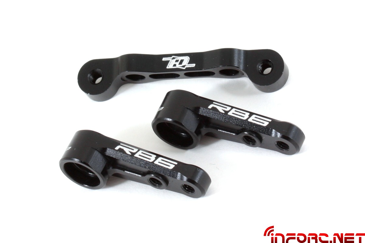Revolution Designs se ha puesto las pilas para vestir de gala el Kyosho RB6 2WD, lanzando una bancada para servo de dirección, soporte de alerón, tren de dirección de aluminio y unas tuercas para precarga. Todos ellos han sido fabricados en aluminio 7075T6 de alta calidad y todos han recibido un anodizado negro como acabado. Todas las piezas encajan perfectamente en los anclajes de las originales y su finalidad principal es mejorar la estética y durabilidad el RB6. Además el conjunto de dirección metálico aumenta la sensibilidad en la dirección al eliminar la flexibilidad de las piezas de plástico con la rigidez de las de aluminio, algo de agradecer en circuitos con mucho agarre.