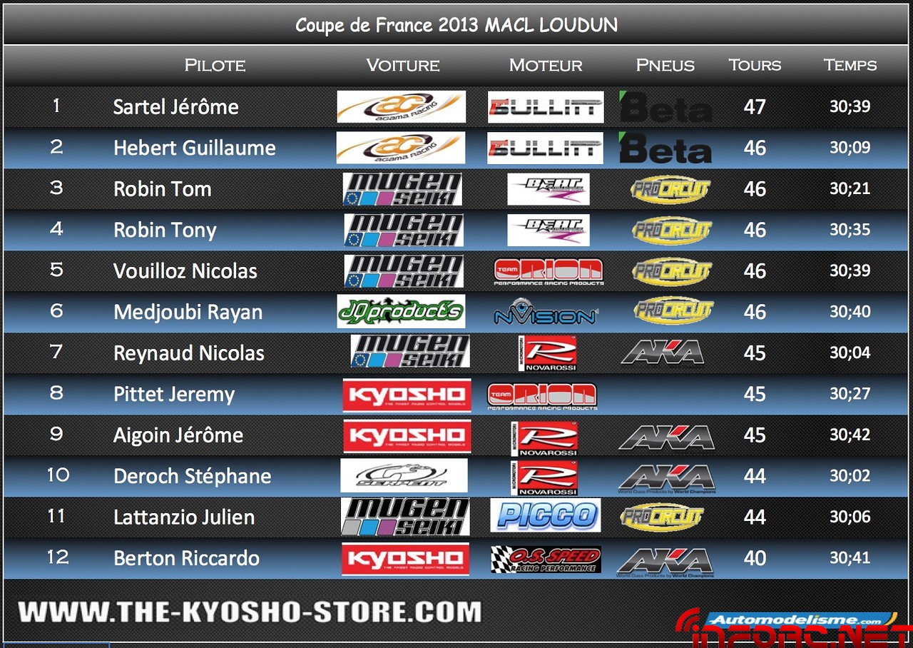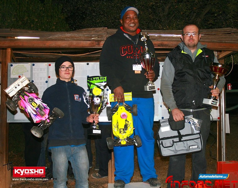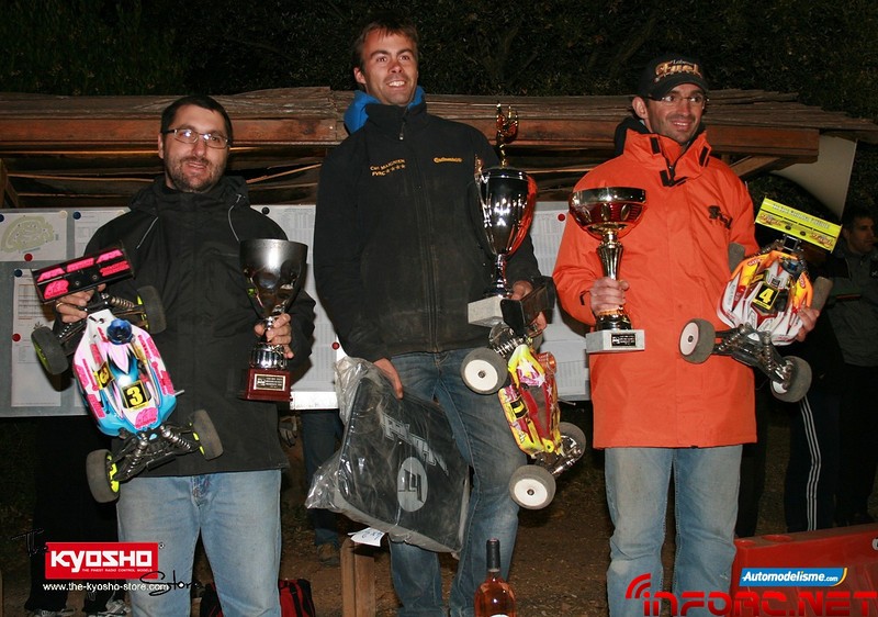 Desde Automodelisme.com nos remiten la información del Grand Prix de Pierrefeu que ha tenido lugar este fin de semana en Francia y donde Jerome Sartel se ha alzado en lo más alto del podio. La final se disputó en unas condiciones complicadas debido a la poca visibilidad generada por la ausencia de luz natural y el polvo levantado por los coches, quitando vistosidad a la carrera y desesperando a algunos pilotos. Siguieron de cerca a Jerome en el podio Guiullame Hébert y Tom Robin.