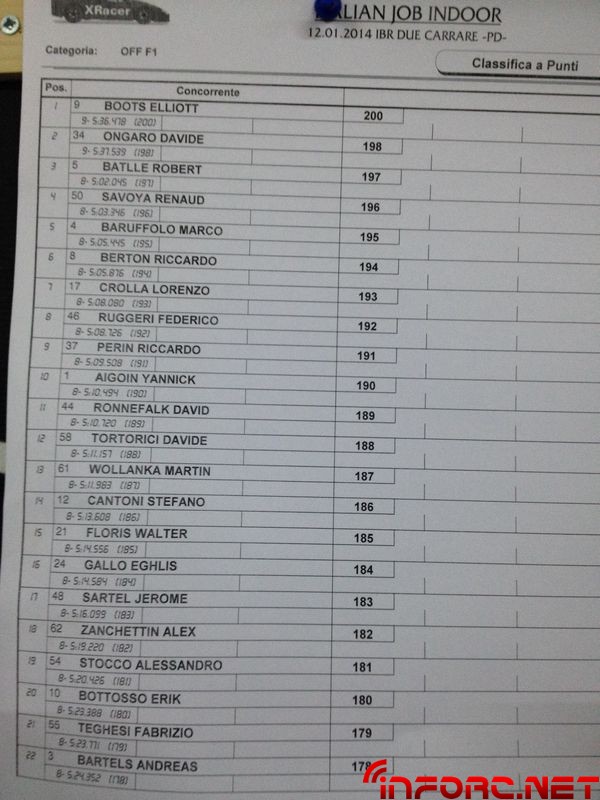 Este fin de semana se celebra en Padova la Italian Job, carrera considerada por muchos como la inauguración oficial de la temporada de RC. En esta ocasión, Robert Batlle a través de RBR36 (clic aquí) nos mantendrá al tanto con fotos e información sobre su situación en el evento. En la primera manga clasificatoria, Robert ha conseguido acabar tercero detrás de Davide Ongaro y Elliot Boots, pero en la segunda manga la salida del pin central delantero ha impedido que pueda dar ni una vuelta, relegándolo a la posición 61 de la general de 62 pilotos. Estamos seguros de que Batlle podrá remontarlo en las próximas mangas.