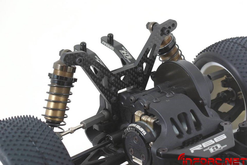 La marca alemana de accesorios y opciones, Revolution Design, acaba de lanzar al mercado, unas mariposas opcionales para el modelo de 1/10 TT de Kyosho, el RB6. Ambas mariposas están fabricadas en fibra de carbono de 4 mm, con una geometría similar a la de origen, pero siendo mucho más ligeras y aumentando la rigidez y la fiabilidad del conjunto de la suspensión. La mariposa trasera está diseñada para usar sólo con la configuración de motor central, lo cual puede ser un atraso en circuitos españoles.