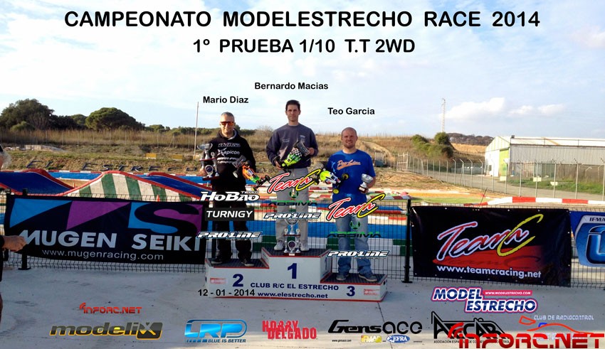 Desde el club El Estrecho, nos remiten estas dos imágenes con sendos podios de las categorías 1/8 TT gas y 1/10 2WD, que se dieron cita el pasado fin de semana en el gaditano circuito ubicado en San Roque. Juan Clavijo se llevó el primer puesto en 1/8 tt gas, seguido por Juan A Romero y Mario Diaz. En 1/10 2wd, Bernardo Macías se alzó con el primer puesto, seguido de Mario Díaz y Teo García.