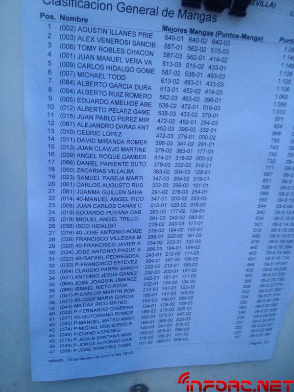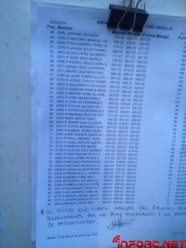 Este fin de semana está teniendo lugar en el sevillano circuito de San José de la Rinconada, la primera prueba del Campeonato de Andalucía 1/8 tt gas 2014, con una inscripción de 90 pilotos. Desde allí, nos han remitido fotografías con los tiempos y el estado del circuito (en orden) Agustín Illanes, Alberto Peláez y Ángel Roque. En la general de mangas ha dominado Agustín Illanes, seguido de Alex Venerossi y Tomy Robles. En las imágenes de abajo tenéis más detalle de la general. Seguiremos informando en esta misma noticia con la info que recibamos desde Sevilla.