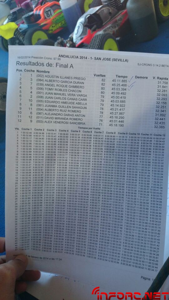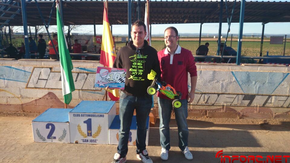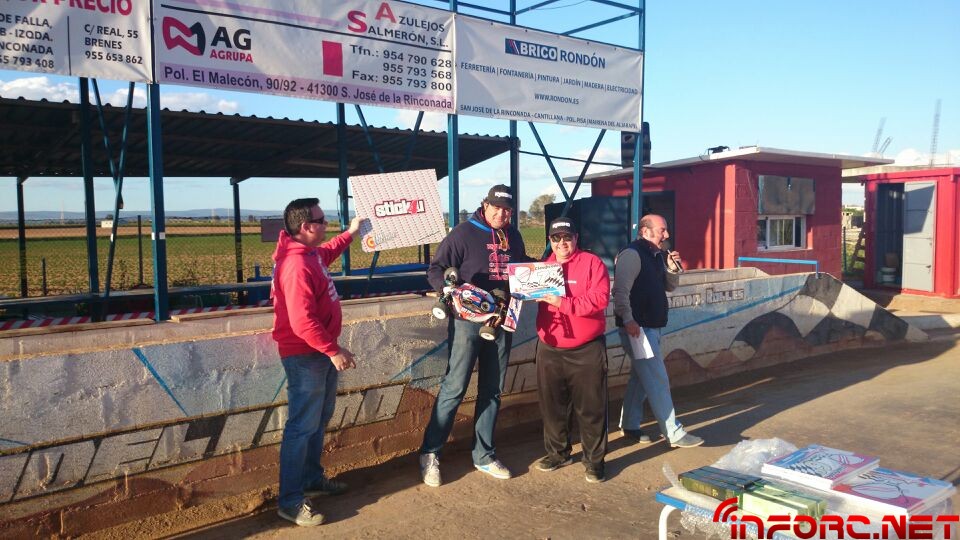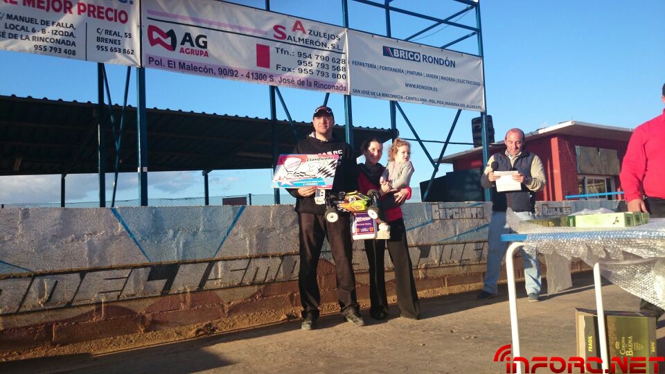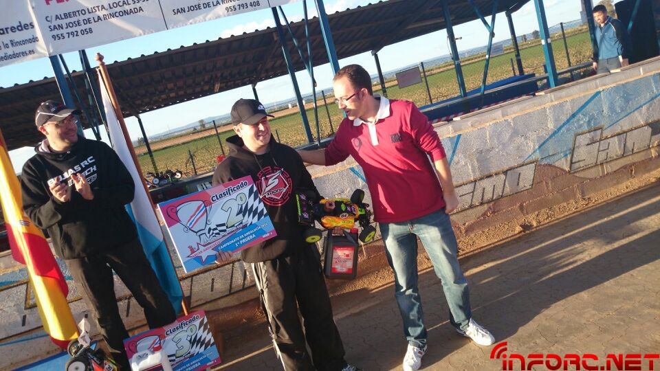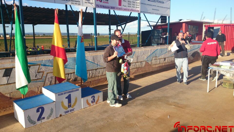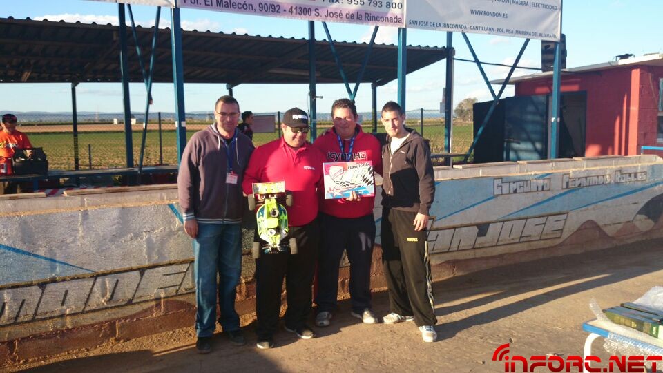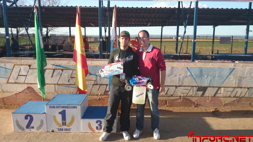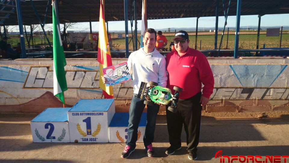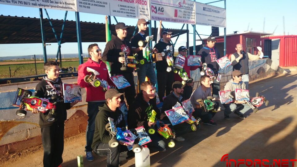 Como ya informamos durante el finde, se ha celebrado la primera prueba del Campeonato de Andalucía 1/8 TT Gas 2014 en San José de la Rinconada y ha sido Agustín Illanes (Mugen / Nova / ProCircuit / Nitrolux) quien se ha llevado el gato al agua tras una impresionante final en la que él y el segundo clasificado, Alberto García (SWORK-z, RB, JConcepts, Mecca), han arrasado con dos vueltas de ventaja sobre el resto de clasificados. Angel Roque (Intech, James, Xtreme) en su regreso al 1/8 tt gas ha conseguido la tercera posición del podium, nada mal tras un tiempo parado y además ha sacado algo de tiempo para remitirnos las imágenes que acompañan a esta noticia.
