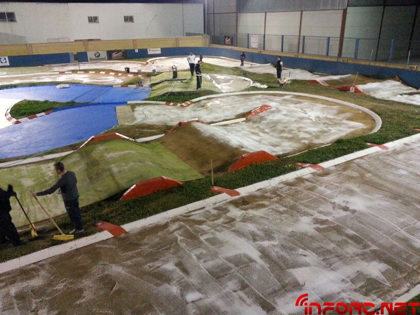 El malagueño trazado de Alhaurín de la Torre lleva varios días siendo acondicionado por el club organizador para la prueba del Campeonato de Andalucía 1/8 TT-E que se celebra en él este fin de semana. Entre las reformas que se han llevado a cabo, contamos un levantamiento de varios centímetros de tierra del trazado, seguido de repetitivos regados y apisonados que han dado lugar a un suelo totalmente liso y compactado, para terminar con un recubrimiento de azucar pensado para mejorar el agarre. Impresionante el trabajo que han hecho desde el Club Alhaurín de la Torre, liderados por Juanma Vera. Estamos deseando ver los resultados con pilotos en pista. ¡Estad atentos este finde!