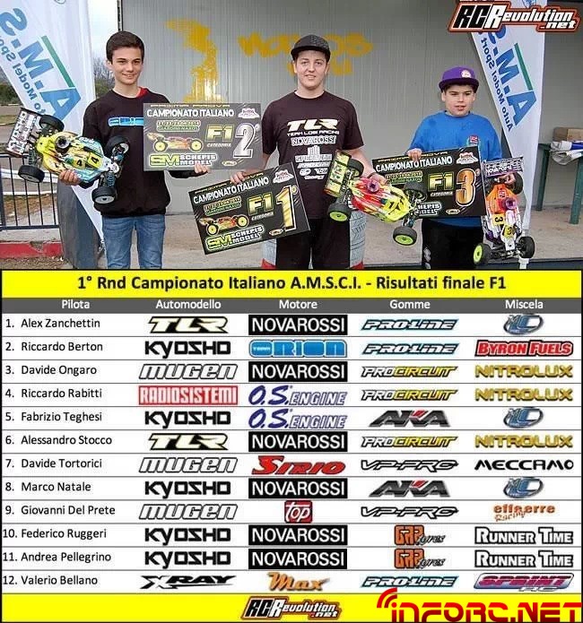En cuanto al trazado, se presenta con un terreno totalmente compactado, liso y sin tierra suelta…o esa es la impresión que da en las fotos. Por desgracia, no hemos encontrado fotos con más detalle o vídeos en los que corroborarlo. En lo que respecta a la prueba, fue finalmente Alex Zanchettin quien se alzó con la victoria, seguido de Riccardo Berton y en tercer lugar el joven piloto de Modelix Racing, Davide Ongaro. Un podio lleno de jóvenes pilotos que parecen haber desplazado irremediablemente a las “viejas glorias” italianas. Queda esperar para confirmar si finalmente se celebrará un Warm Up en el circuito de Nachos o si directamente tendrá lugar el mundial. Estaremos al tanto de novedades para seguir informando.
