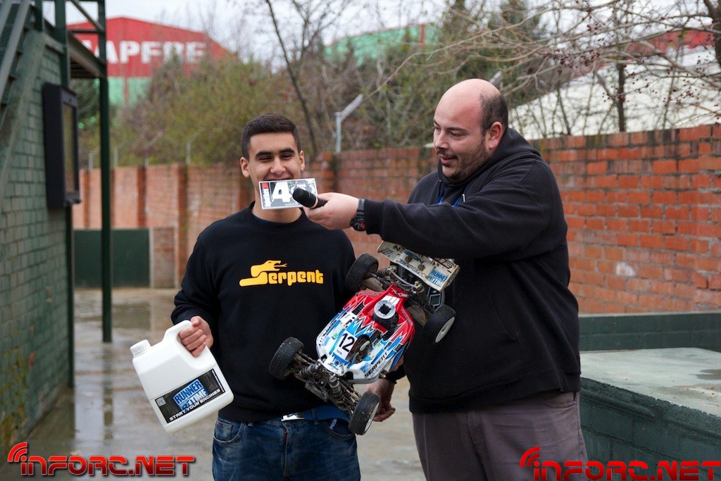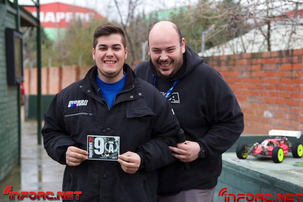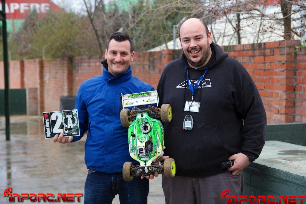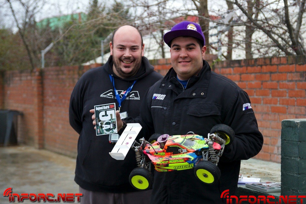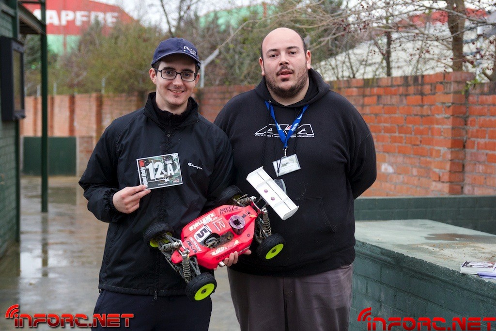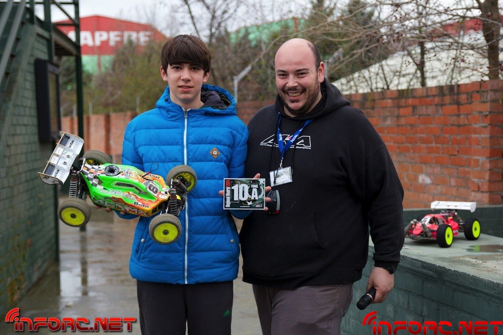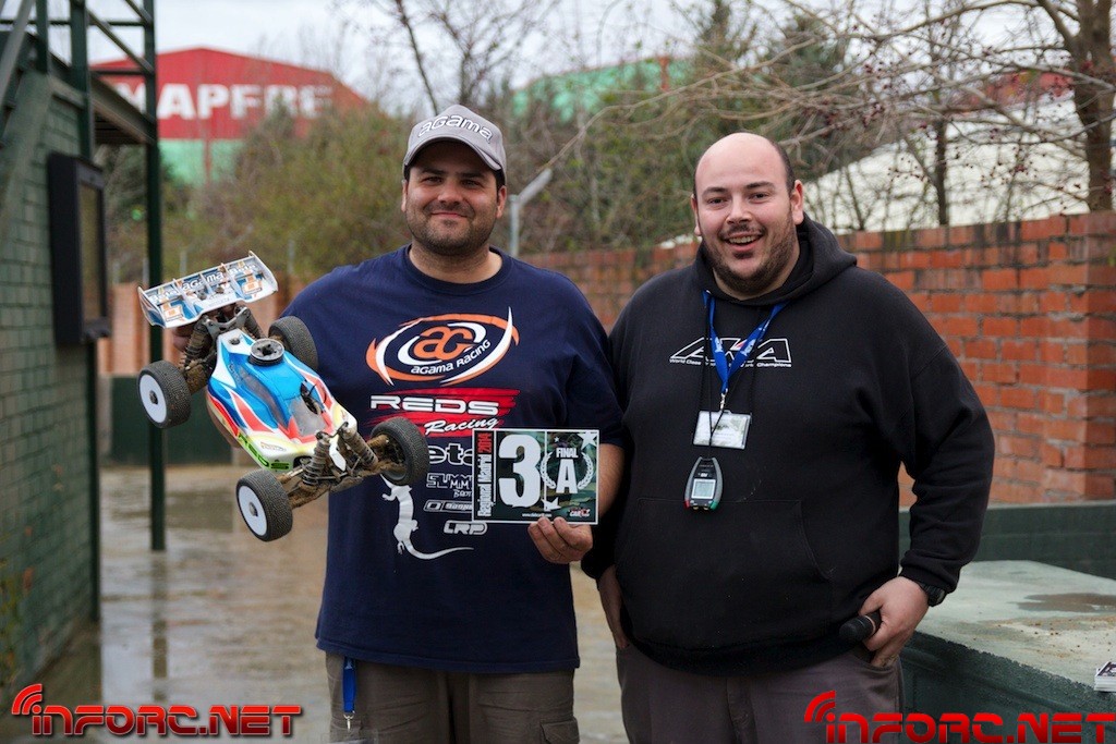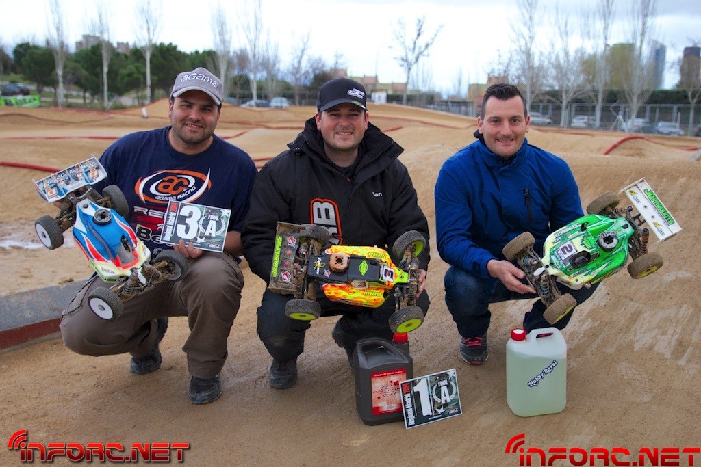 Ayer tuvo lugar en Fuencarral la primera prueba del Regional 1/8 TT gas con más de 70 asistentes a un evento en el que la climatología finalmente respetó, pese a las predicciones de lluvia que obligaron a cancelar los entrenos del Sábado. En un trazado que se presentaba en perfecto estado gracias al buen drenaje y al serrín esparcido por la organización en las zonas más afectadas por las lluvias del día anterior, fue Alberto García quien se alzó con el primer puesto de la carrera, seguido de cerca por Juanma Guillén y en tercer lugar, Dani Vega.