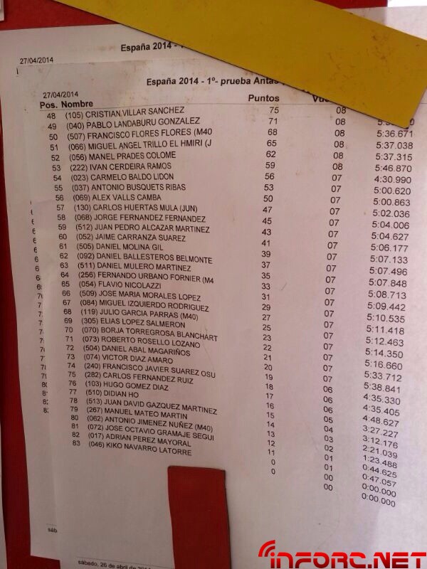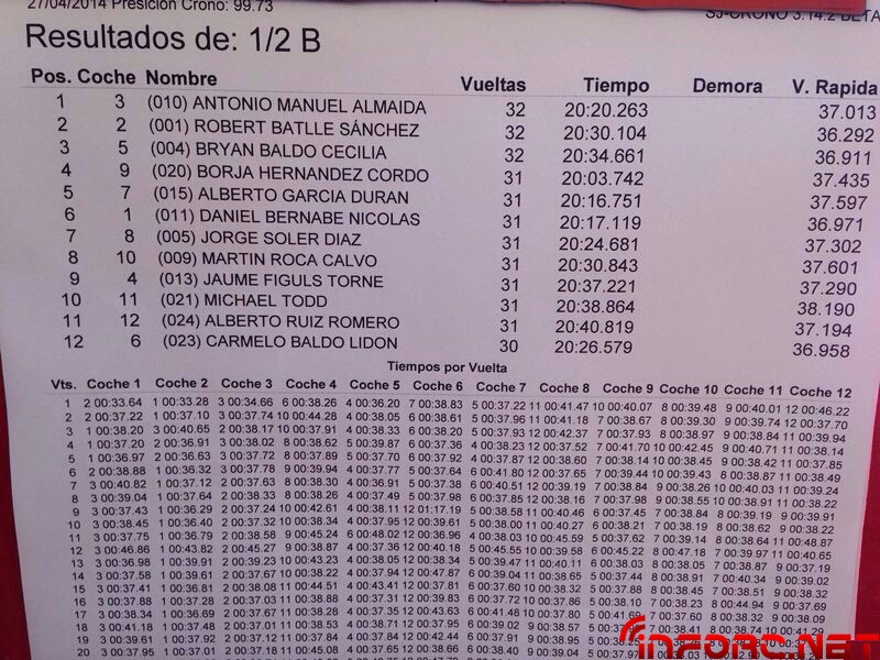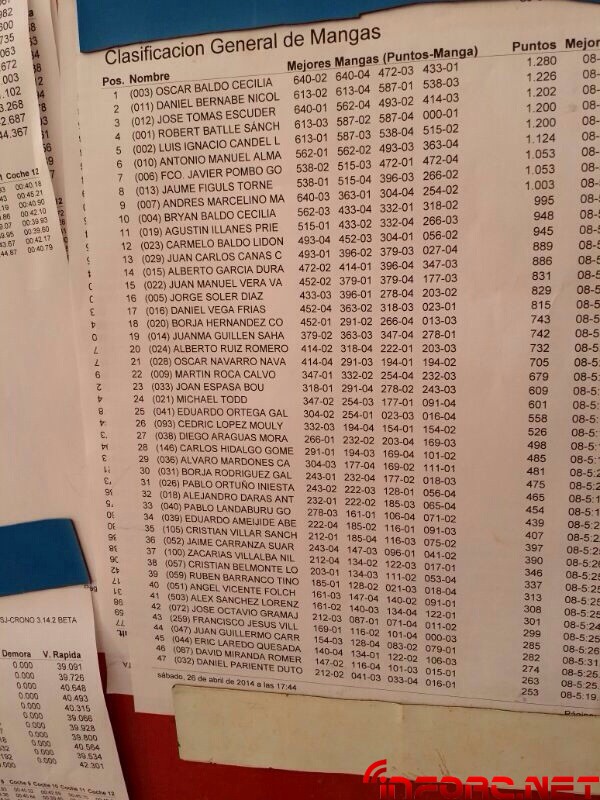En la general de mangas nos encontramos con la sorpresa de ver Oscar Baldó arrebatándole la pole a la que lleva suscrito años Robert Batlle, quien ha cometido algunos errores en las últimas vueltas de sus mangas. En segundo lugar se encuentra Daniel Bernabé seguido de José Tomás Escudero. Os dejamos las fotos de la general..