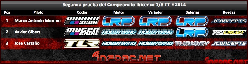 El pasado domingo se celebro en el reformado circuito de Sa Coma del Ibiza RC, la segunda prueba del Campeonato Ibicenco en un trazado que se presentaba sucio y deslizante debido a los fuertes vientos que lo había azotado durante toda la semana, por lo que todos los pilotos tuvieron que esforzarse con la puesta a punto durante la tarde del sábado. Los resultados quedaron como veis más abajo.