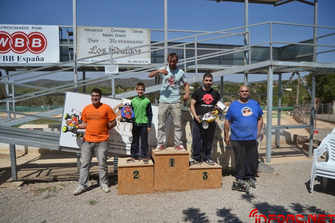El pasado 13 de abril se disputó en el circuito del club RCBuggy de Sant Joan de Moró la segunda prueba del Cto de Levante de 1/8 TT Eléctrico , con una asistencia de 20 pilotos, poco a poco se va consagrando esta categoría y se va aumentado el número de participantes tanto a nivel provincial como regional. En las mangas clasificatorias el piloto más rápido fue Dani García pero en las finales Sergio Martinez se impuso proclamandose campeón de la prueba.