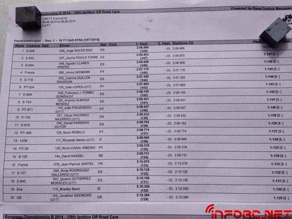 ACTUALIZADO A LAS 21:28 – Al finalizar el reseeding, ha sido Jorge Soler quien se ha alzado con la primera posición, seguido por Javi Pombo, estando ambos envueltos en una situación algo extraña ya que sobre el papel, Pombo tenía mejores tiempos, mejores puntuaciones…sin embargo el programa de crono utilizado por AECAR ha alzado a Jorge como “poleman”. En tercer lugar, un rapidísimo Agustín Illanes.