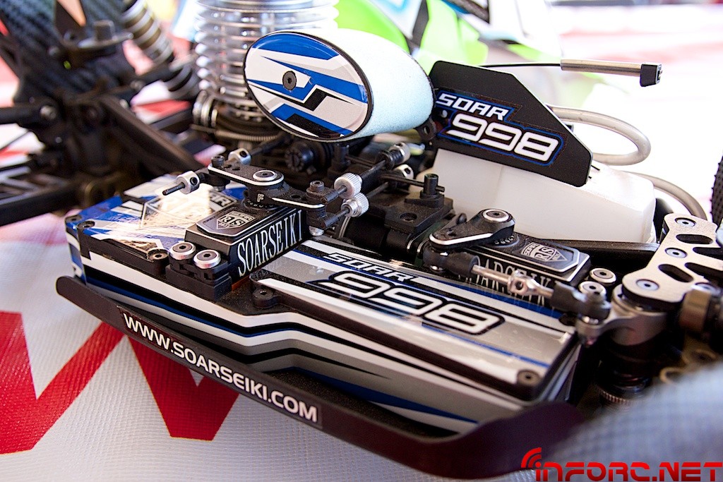Hoy en “¿Cómo es por dentro…?” os mostramos al detalle el buggy de Soar Seiki que en breve será lanzado al mercado, el Soar 998. En él se encuentran soluciones de todo tipo, algunas clásicas de eficacia probada y otras innovaciones pensadas para mejorar el comportamiento del coche o facilitar su montaje y mantenimiento a sus propietarios. Llama mucho la atención el sistema de pistones metálicos con junta tórica en el borde, aunque se nos comentó que no era una pieza definitiva en el coche de producción y estaba por decidir si usarían esos o los clásicos de “plástico”. Échale un ojo a la galería de este nuevo coche que sin duda dará mucho que hablar en los circuitos de España.
