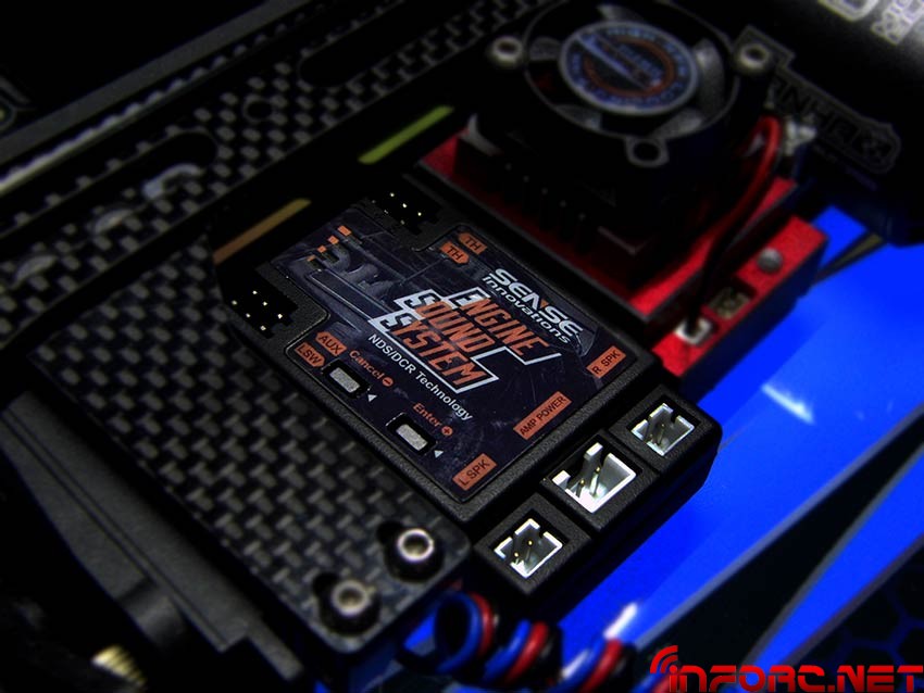 Sense Innovation ha desarrollado este dispositivo al que han llamado ESS, con la finalidad de que los coches brushless suenen…¡como un coche real! El dispositivo consta de un pequeño pero potente altavoz que gracias al sistema NDS (sampleo no lineal) y DCR (reconocimiento dinamico de captura) detecta el nivel de acelerador que se está pulsando en la emisora usando un procesador avanzado que envía las señales necesarias de vuelta al altavoz. El resultado es el de un sonido realista que revoluciona de un modo totalmente directo al nivel de acelerador que pulsemos.