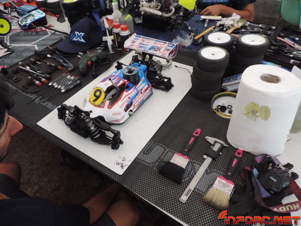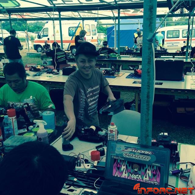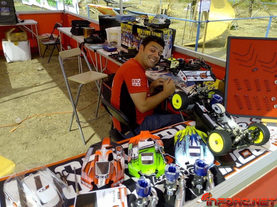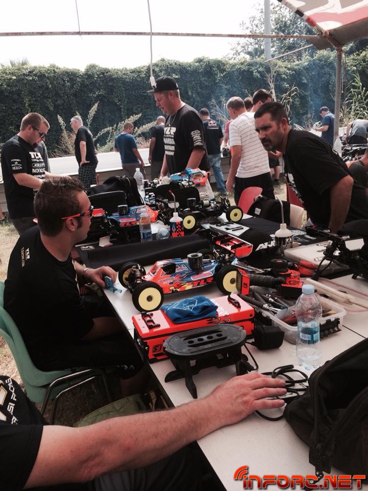 A pesar de que la superficie del trazado italiano “parece tierra” según muchos pilotos, se trata de un compuesto muy duro, compactado y abrasivo, que acelera el desgaste de los neumáticos a gran velocidad. Los entrenamientos de hoy han visto a David Ronnefalk (Kyosho MP9) alzarse con el mejor tiempo del día, seguido del canadiense Ty Tessmann (Hot Bodies) y Jerome Aigoin (Kyosho MP9) como tercer mejor tiempo del día. El defensor del título mundial, Robert Batlle, se encuentra ahora mismo en sexto lugar, rodando entre los mejores como era de esperar con su nuevo Mugen MBX7R.
