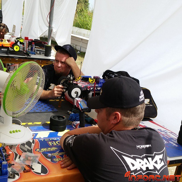 El más rapido de la jornada ha sido David Ronnefalk con su tiempo de 1.50, conseguido tras endurecer los diferenciales de su Kyosho MP9, algo que según el piloto, ha mejorado su velocidad en el paso por curva. El tercer clasificado en la general ha sido Ty Tessman con su Hot Bodies D812, el único piloto capaz de igualar las vueltas en 36 segundos de Ronnefalk, quien comentaba además que eligió las ruedas equivocadas para la primera manga de la mañana.