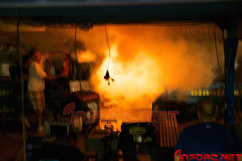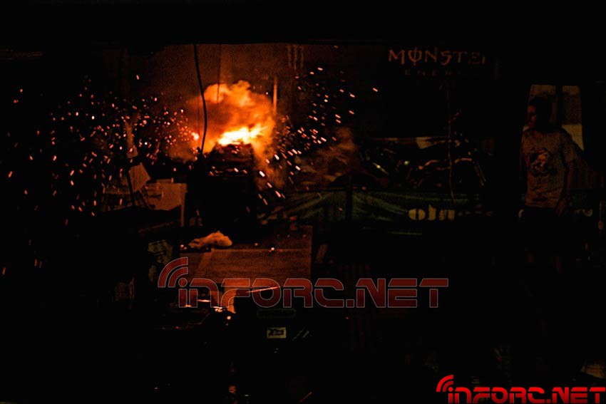 El 30 de Agosto tuvo lugar en Málaga la 8ª edición de la Carrera de la Sardina y en la noticia dedicada a la carrera, comentamos levemente un incidente que tuvo lugar con algunas LiPo, incluyendo algunas imágenes en su galería. Hoy, os traemos esas fotos por separado para que nadie se quede sin ver lo peligroso que puede ser un incendio por LiPo y las proporciones que puede llegar a alcanzar. Concretamente, el que se muestra en las imágenes, corresponde a unas LiPo para un 1/8 TT-E que estaban cargando sin su correspondiente bolsa de seguridad, además de estar todas juntas apiladas, lo que provocó una reacción aún mayor.