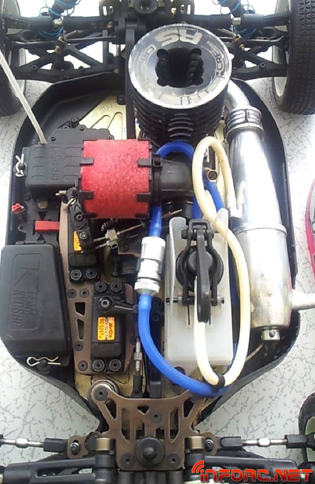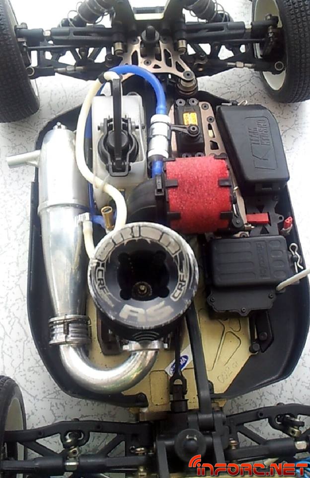 Supusimos que podía tratarse de un error en la tabla y nos pusimos manos a la obra para verificar en las galerías de imágenes la marca de motor de Candel, aunque lo que encontramos en las fotos fue, efectivamente, un Kyosho MP9 motorizado con un motor cuya culata no era la clásica naranja de RB, sino negra, típica de Team Orion. Tras esto, Armiche Alemán (mecánico de Miguel Matías y XRay) ha conseguido remitirnos algunas fotos del coche de Candel quien no parece esconder demasiado su nueva motorización, por lo que entendemos que puede tratarse de un cambio definitivo aún por oficializar. Estaremos atentos.
