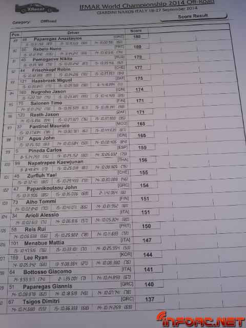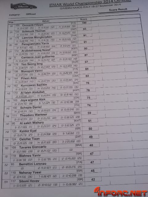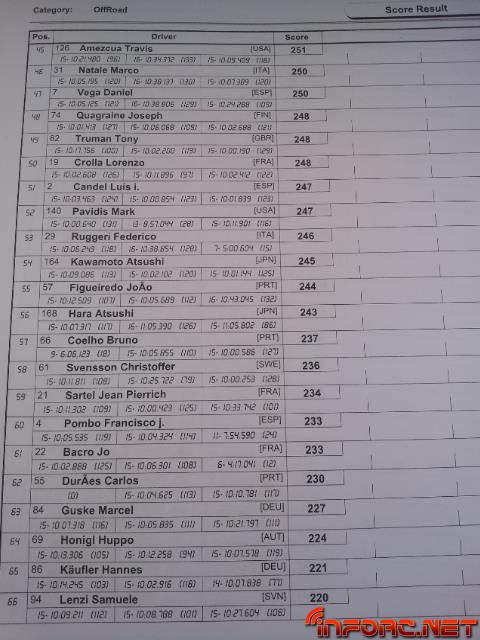 Además, Armiche Alemán, mecánico de Miguel Matías y su XRay en el mundial que actualmente va el 22 de la general, nos ha remitido las fotos de la tabla general para que podamos ver los tiempos de todos los pilotos además de los top que veréis con sus marcas como siempre. En cuanto a los españoles: