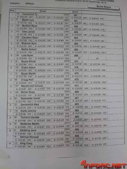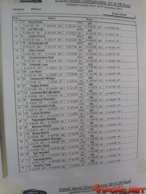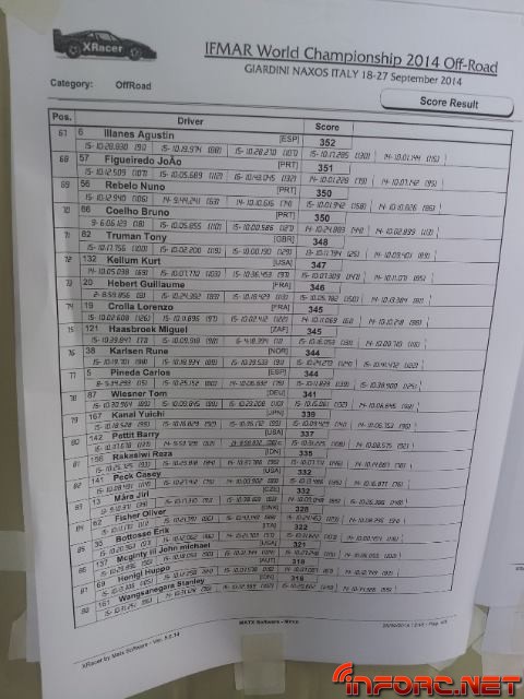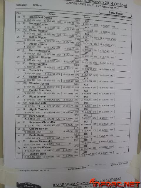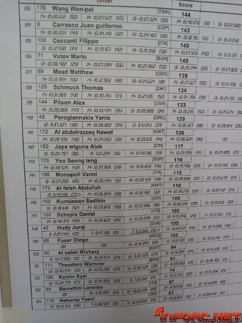EDITADO A LAS 13:09 – Fotos de la clasificación general a falta de una manga, cortesía de Armiche Alemán y el equipo XRay, del que está siendo mecánico para el portugués Miguel Matías, que actualmente se encuentra en la 26ª posición ¡Ánimo Miguel!