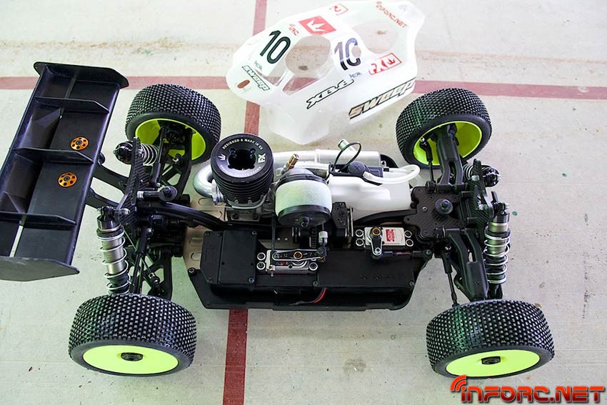 Esta entrega de “¿Cómo es por dentro…?” es además una noticia de cambio de marca de uno de los pilotos top del panorama nacional, Alex Daras. Alex, además de competir de ahora en adelante con XRay, estrenándose en Redován con un magnífico 11 puesto en el dificil trazado alicantino, se encargará de su distribución a nivel nacional en todo lo relacionado con el todo terreno. Como podéis ver en las fotos, Alex ni siquiera tuvo tiempo de personalizar su carrocería, ya que montó el coche el jueves y lo estrenó el Viernes en el Camp. de España. Echadle un ojo a las fotos para ver cómo montó su coche, las geometrías, suspensiones y tal vez algún truco de montaje.