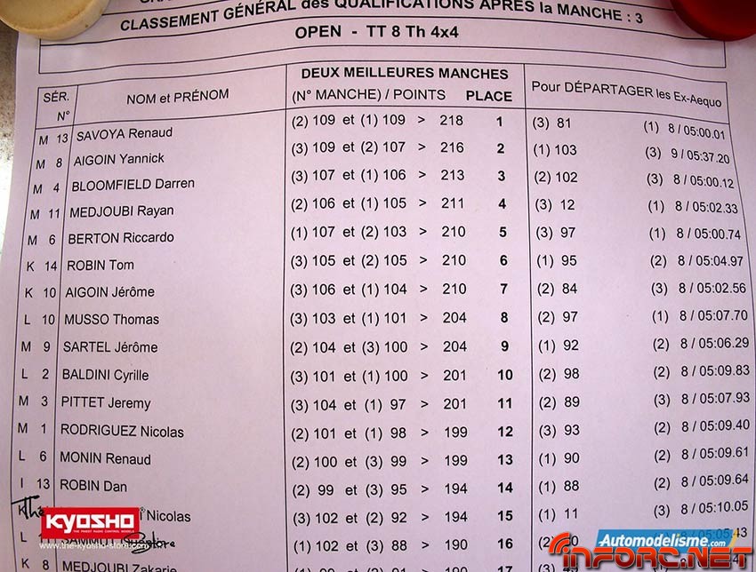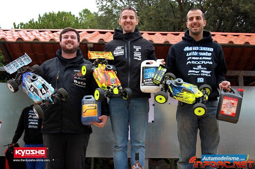 Desde Automodelisme nos informan de los resultados del GP de Pierrefeu de este fin de semana, que desafortunadamente se tuvo que cancelar por lluvia, usando así el resultado de las clasificatorias como resultado final de la carrera. De este modo, Reno Savoya estrenó su Hot Bodies con una victoria, aunque desafortunadamente haya tenido que ser victoria “a medias”, seguido de Yannick Aigoin con su prototipo de Associated y el piloto inglés Darren Bloomfield con su Agama.