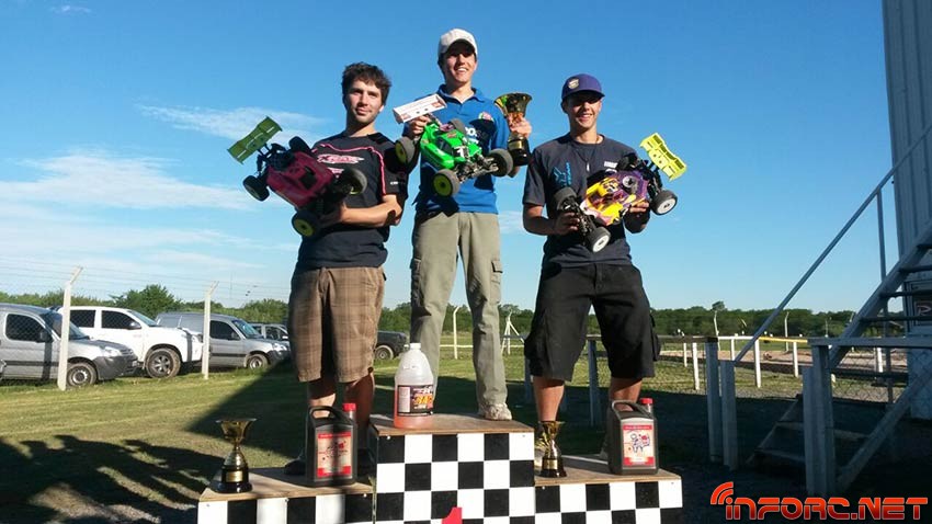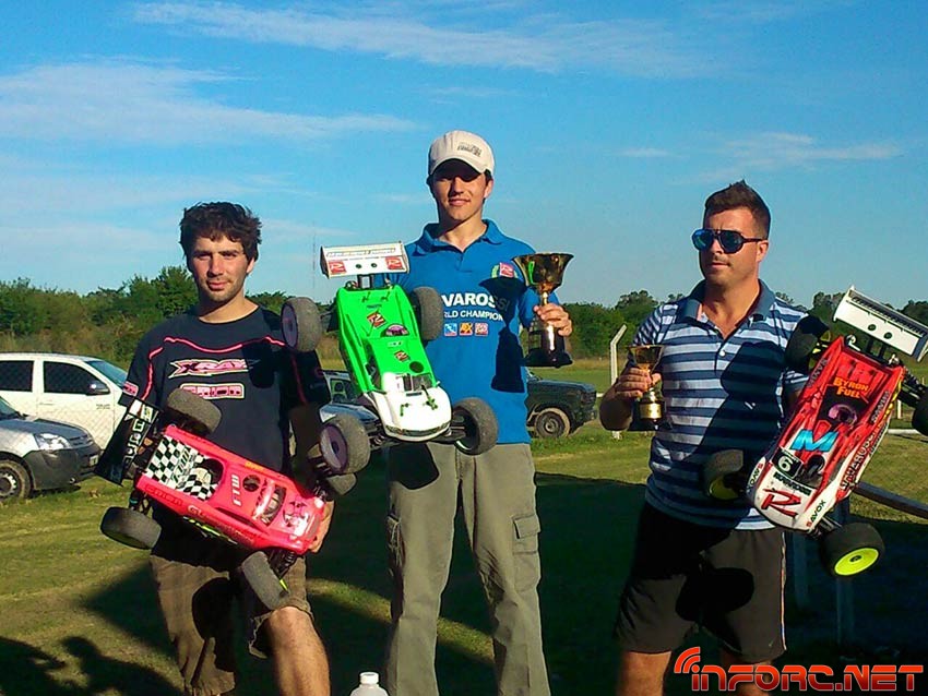 De esta manera el TQ tanto en Buggy Pro como en Truggy Pro quedaron en manos de Agustin Cutini (Mugen/Novarossi). En Buggy Master el TQ fue para Tobias Delgado (Mugen/Alpha), y en Truggy Master la pole fue para Tomas Ferrari (Xray/Novarossi). Luego de la lluvia un grupo de pilotos y colaboradores de la pista, se quedaron trabajando muy duro para recuperar el circuito y asi poder correr las finales. Afortunadamente el día domingo el clima ayudo a que se pueda secar el circuito y se llevaron a cabo las finales a 45 minutos para cada categoría, las cuales fueron muy luchadas y emocionantes!